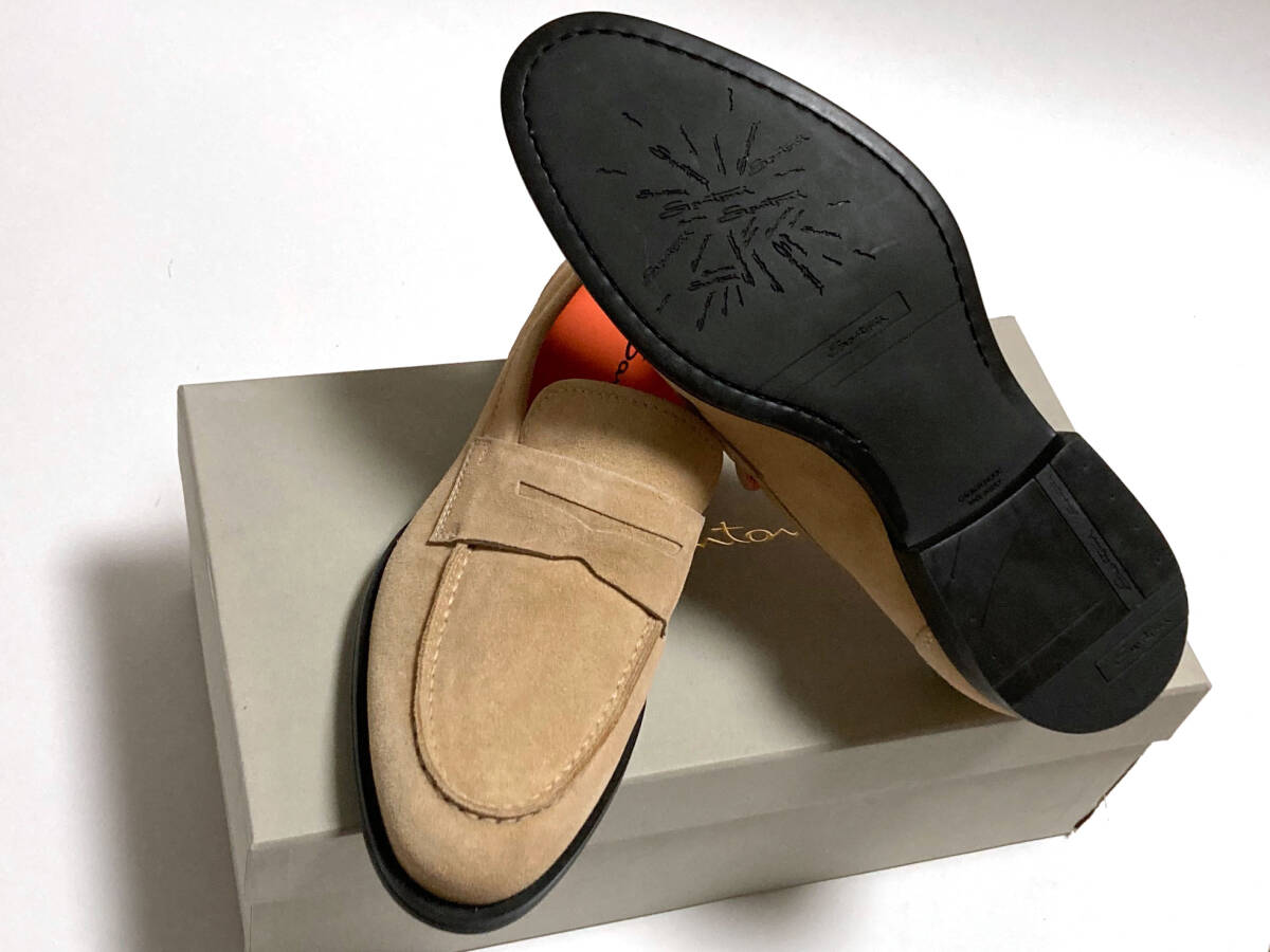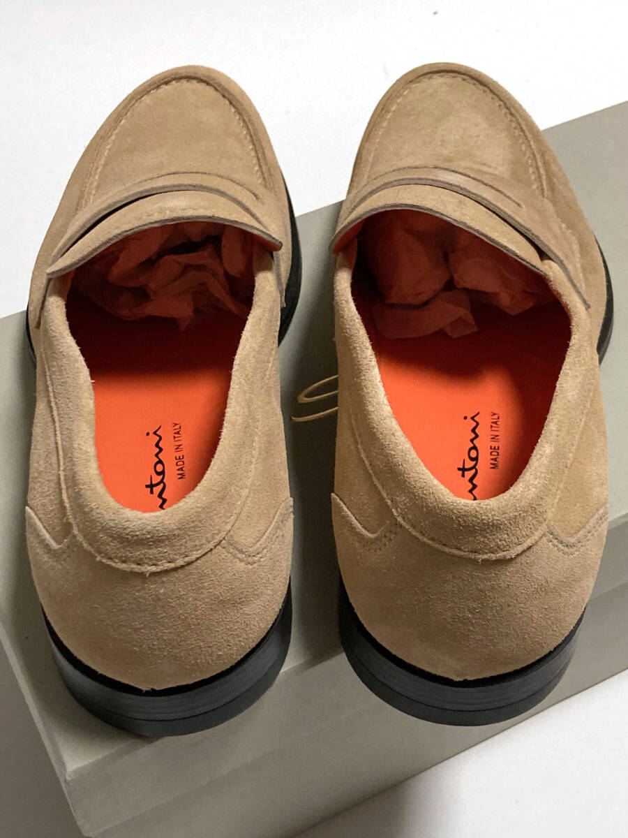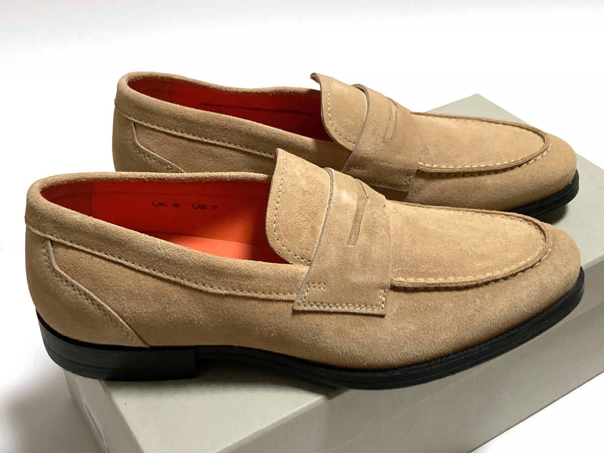 Santoni スエードペニーローファー コインローファー sand サントーニ UK6(25cm) ラバーソール made in ITALY イタリア製