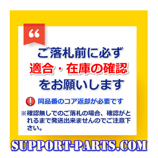 コアの返却ができない場合は、ご購入できません。 但し、リビルト品であっても商品名、タイトルに、“コア返却不要” と記載のある部品、 及び、社外品(社外新品)の場合は除外します。コア返却は必要ありません。 ※コア返却専用の送料着払い伝票が同梱されていますので、お支払いは発生しません。 (返却期限:到着後2週間以内) (返却送料:送料無料) 返却期日までにコアの返却が無い場合は、追加料金(コア代金=購入額の80%~200%)をお支払頂きます。 【返却コアに、変形・破損・割れ・部品の欠品・改造・分解などがある場合も別途請求(コア代同等額)が発生します。事前にご相談ください】 ご注文時に、コア返却の予定日をお伺いいたします。 (作業日程の都合で延滞する場合は、ご連絡を頂ければ、多少の期日変更は可能です。) 【コア返却手順】交換修理時に取り外した故障部品を元箱に入れ、コア返却専用着払い伝票にてご返送ください。 ※必ず商品同梱のコア返却専用着払い伝票をご利用の上、ご返却下さい。 万一、紛失などされ場合は必ず弊社にご連絡を下さい。 |