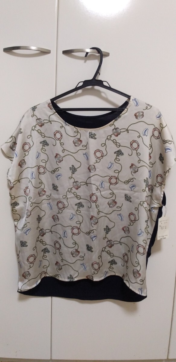 新品 ロペピクニック 前はマリン柄のアイボリーに、後ろは紺色のカットソーです。前はレーヨンが入ってますのでサラッとした生地で、ゆったり着て頂けます。