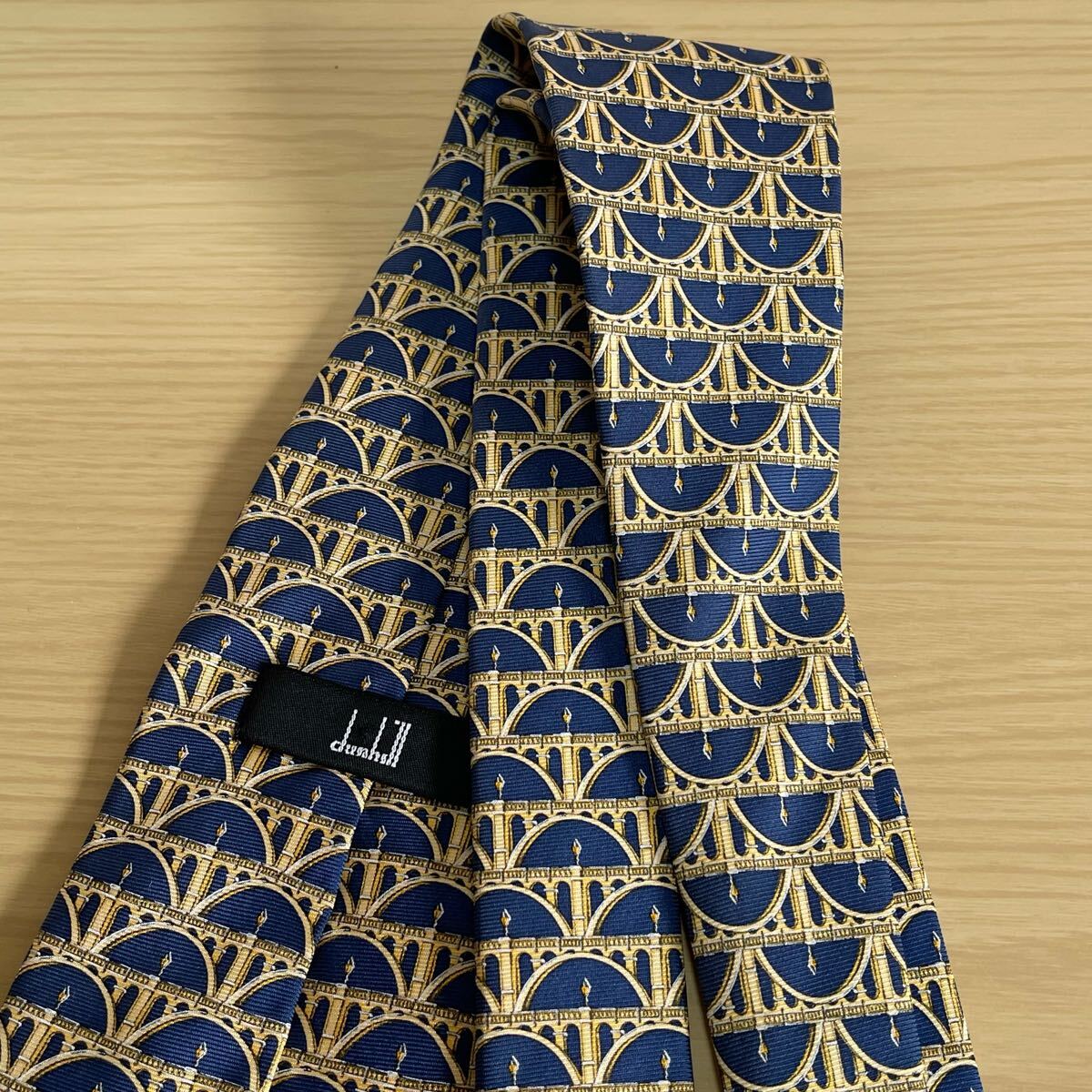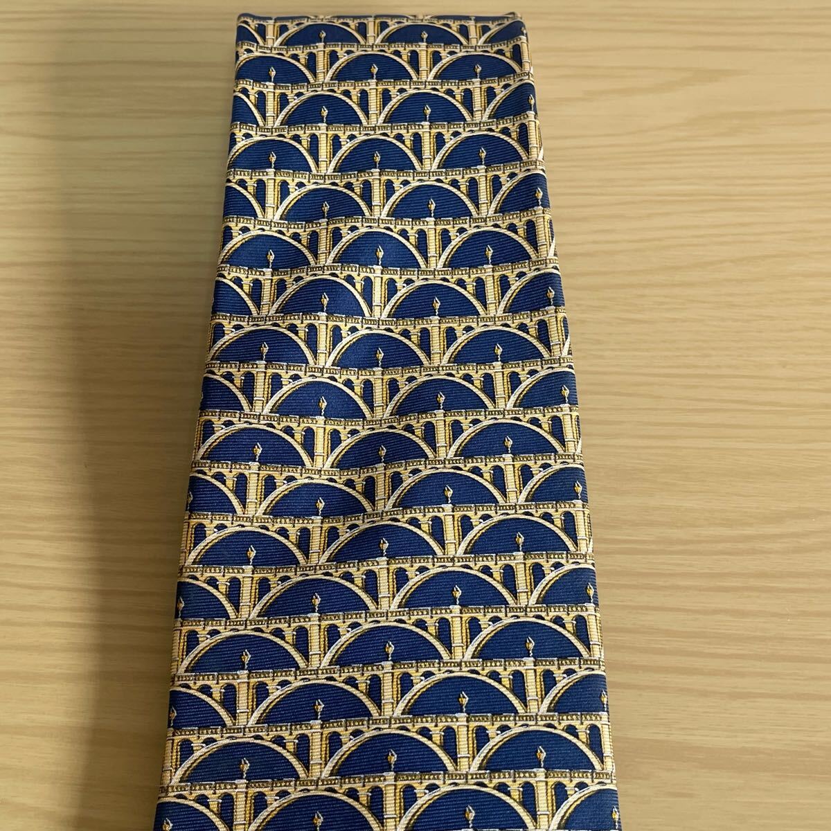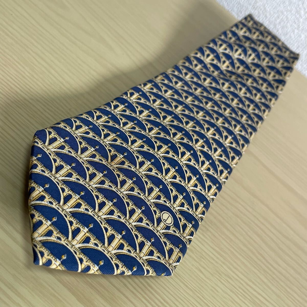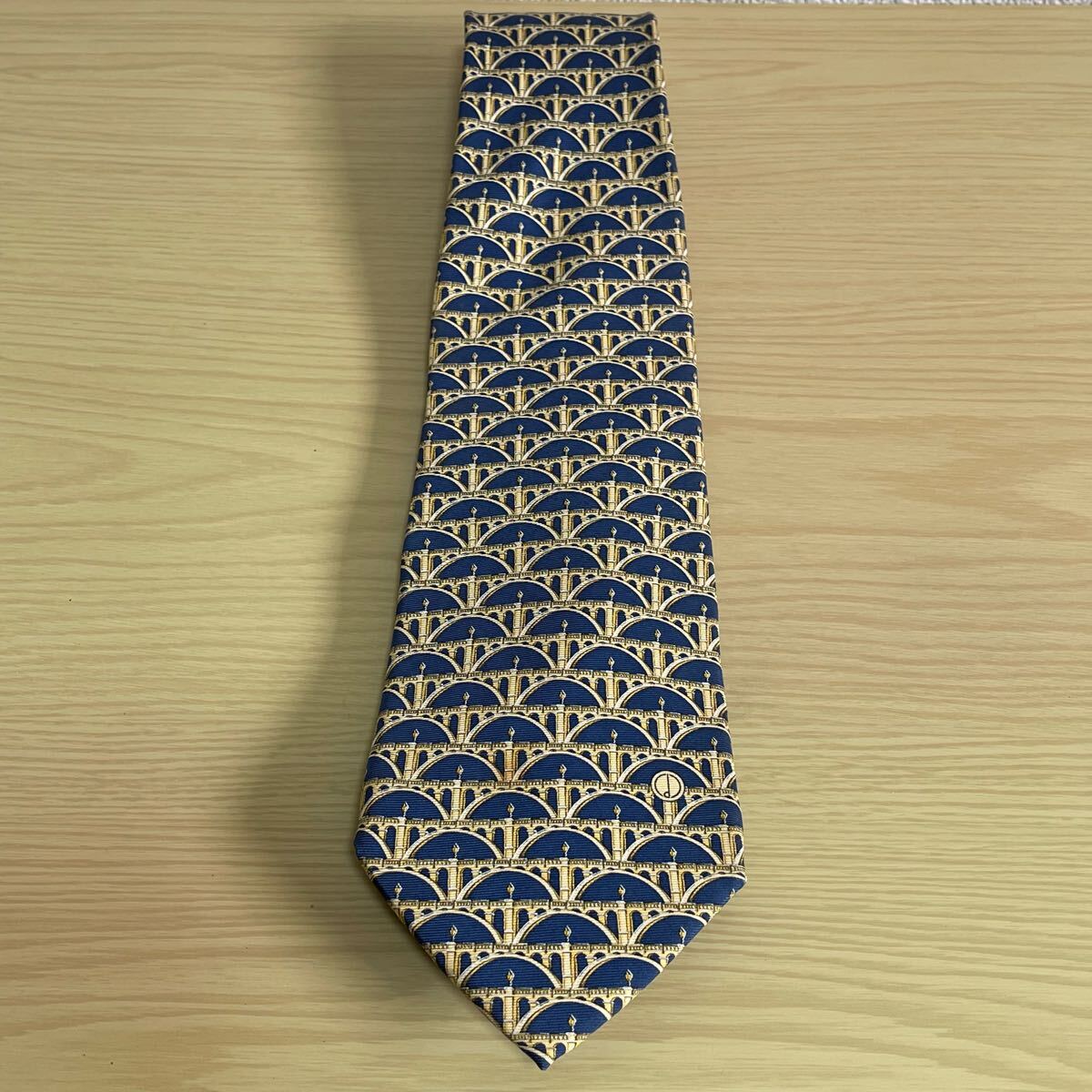 紺ゴールドアーチ建物Dロゴデザインネクタイ