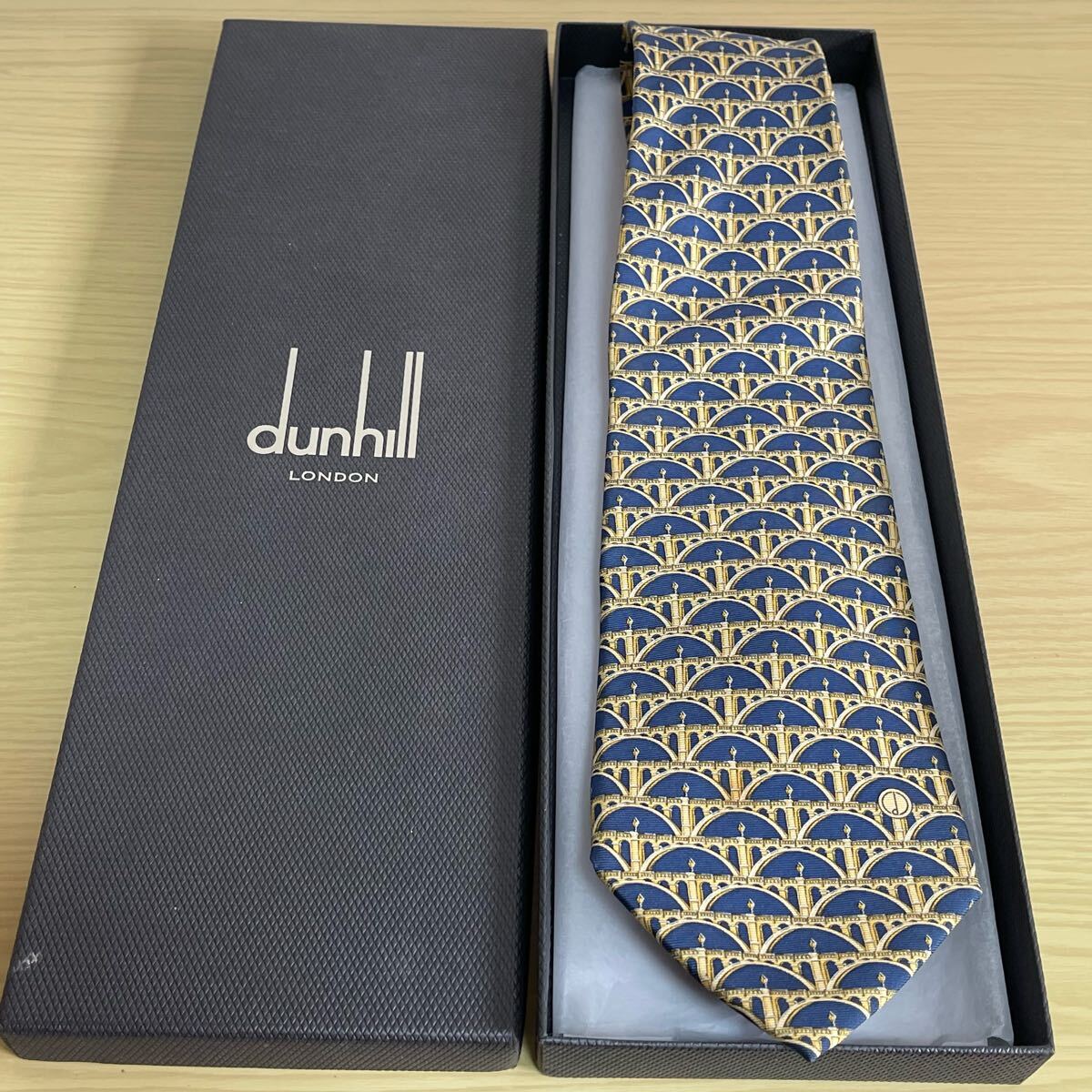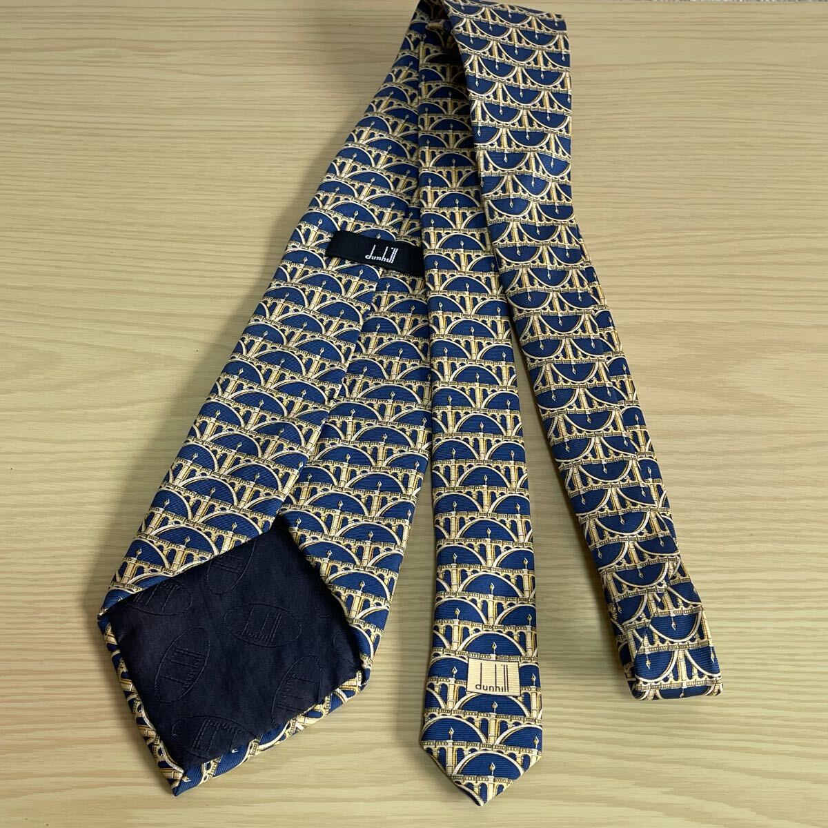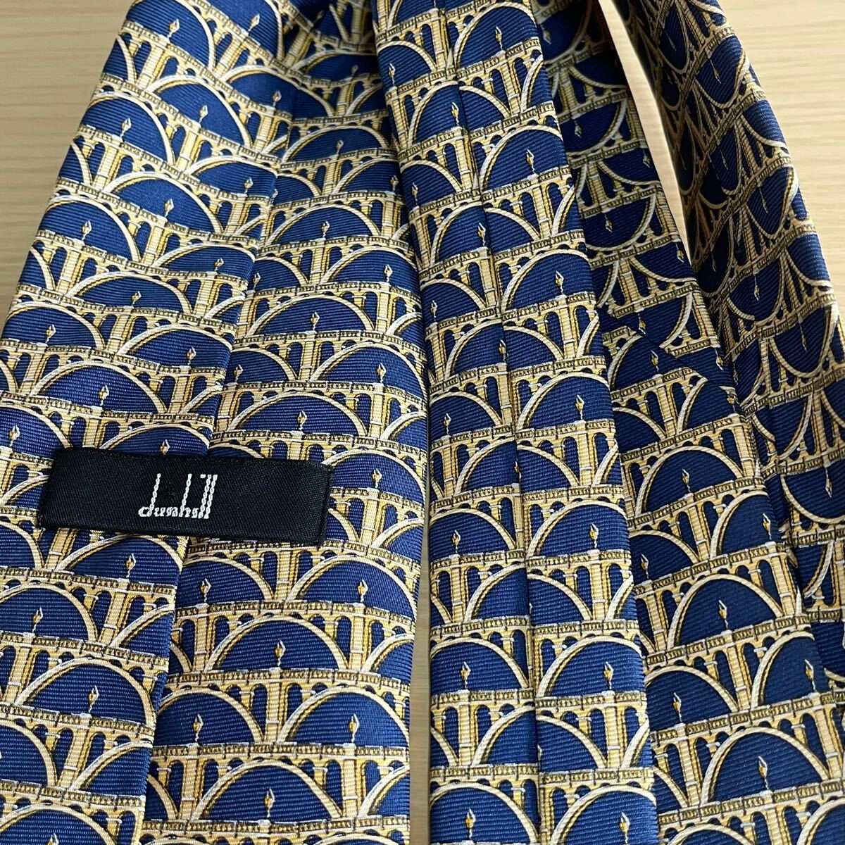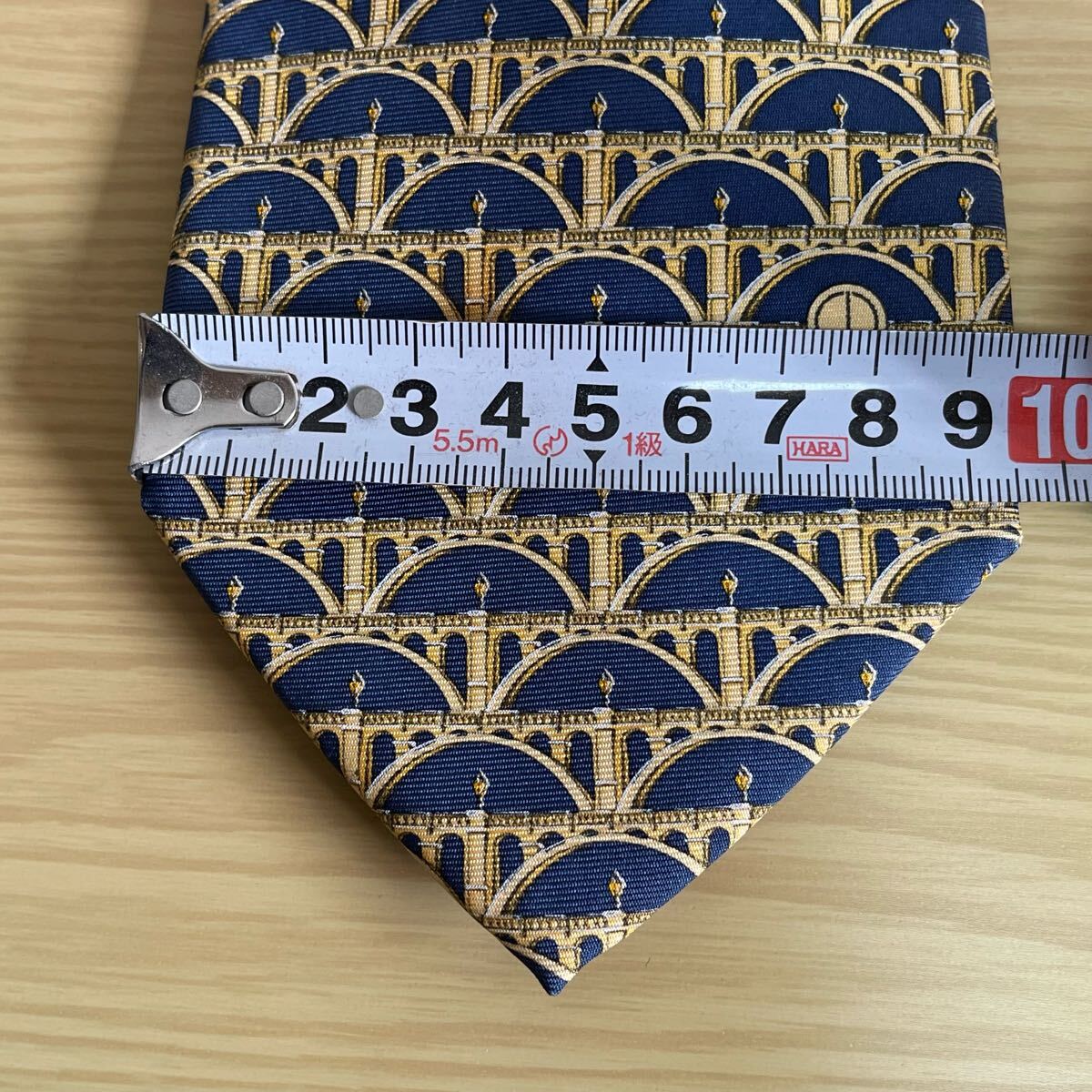 紺ゴールドアーチ建物Dロゴデザインネクタイ