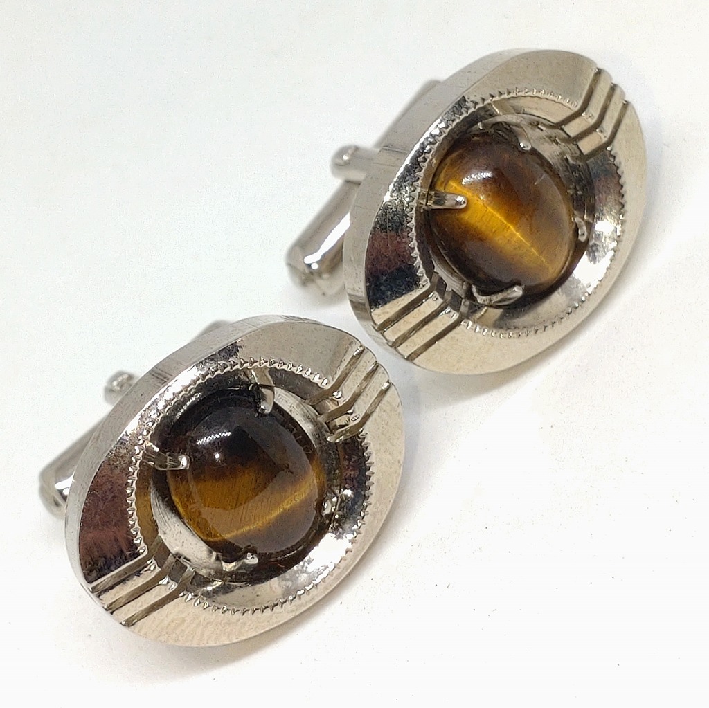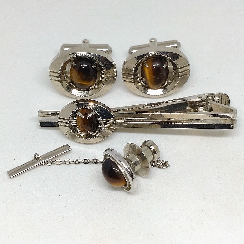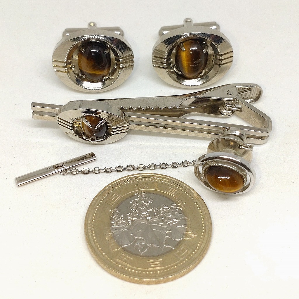 カフス タイピン 4点セット タイガーアイ 猫目石 メンズアクセサリー 【5010】