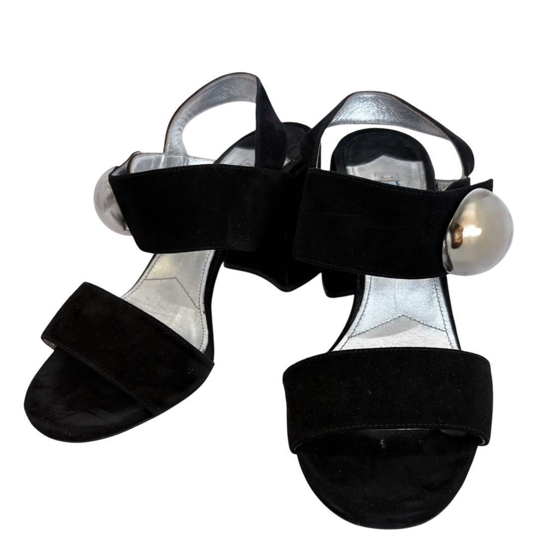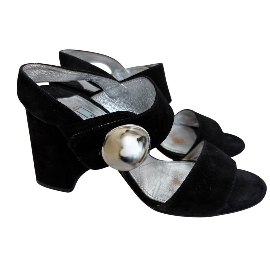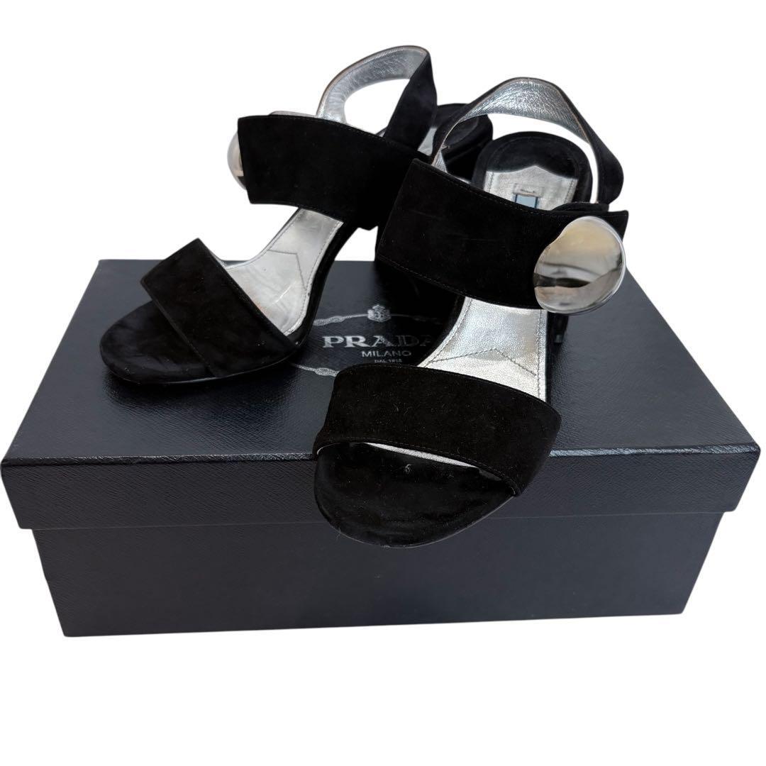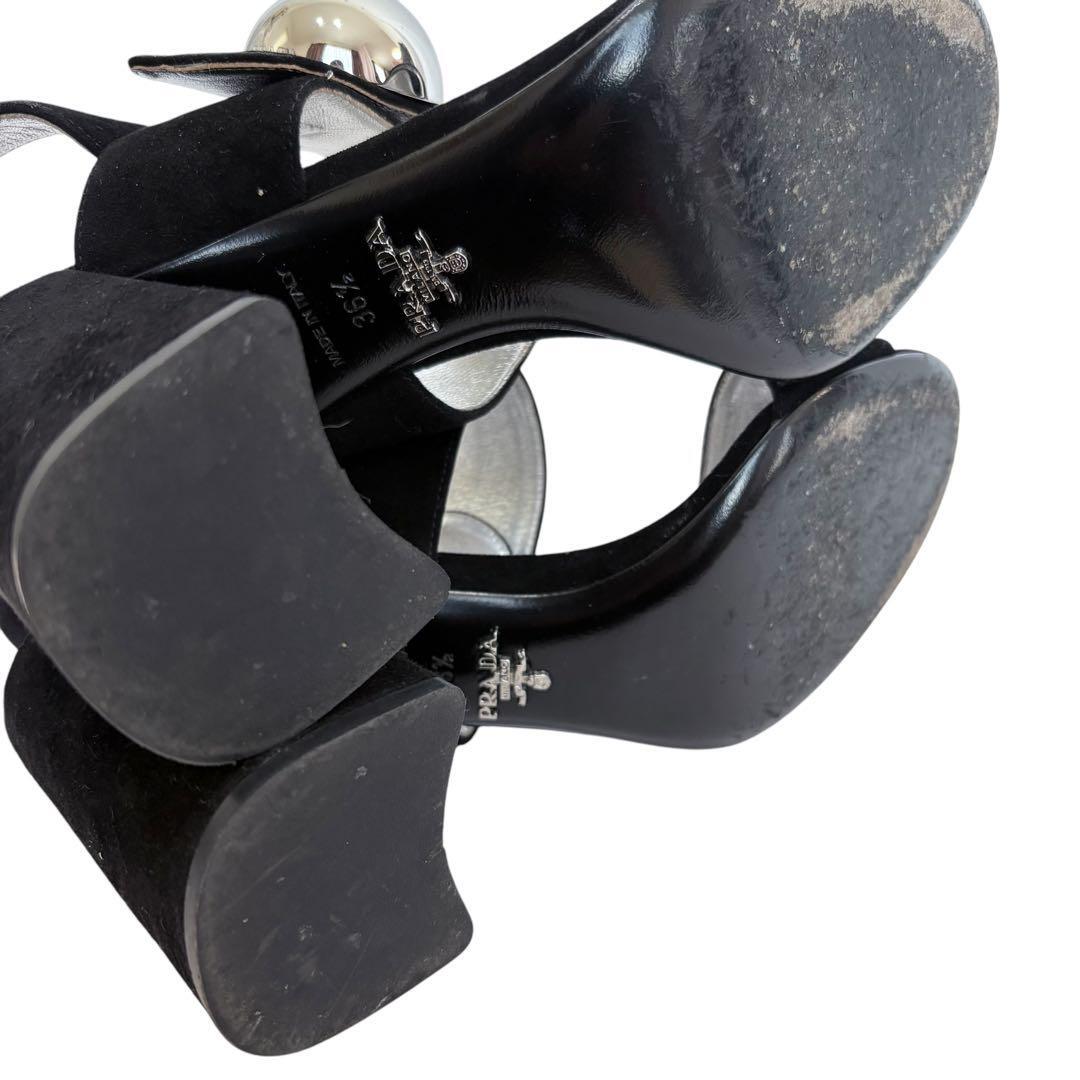 PRADA プラダ ストラップサンダル ブラック スエード 太ヒール 23.5cm
