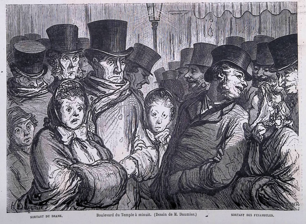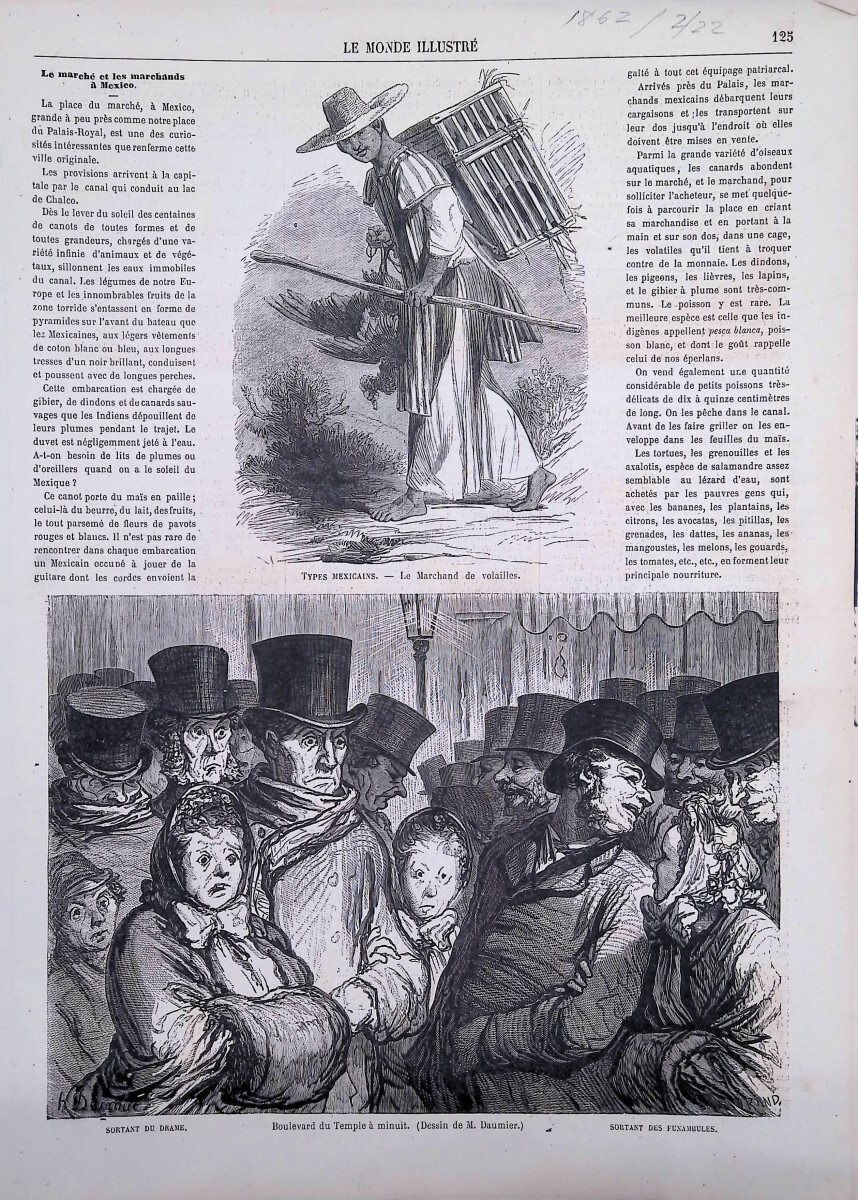 Honore Daumier の作品は、1960年代にパリで刊行される新聞に掲載されるようになります。これは、当時の新聞の一葉です。オリジナルの木口木版画です。 新聞紙のサイズは26cmx36.7cmです。その半分くらいの部分がドーミエの版画です。少し古色が出ていますが、状態は良いと思います。版上にサインがあります。ドーミエの版画のうち、新聞に掲載されたものは、殆ど残っていません。非常に珍しいものです。