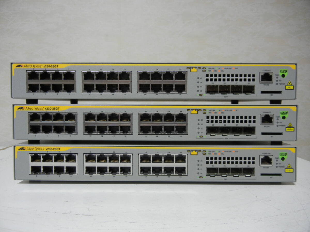 《》【中古】3台SET Allied Telesis AT-x230-28GT レイヤー2plus ギガビット インテリジェント スイッチ 初期化