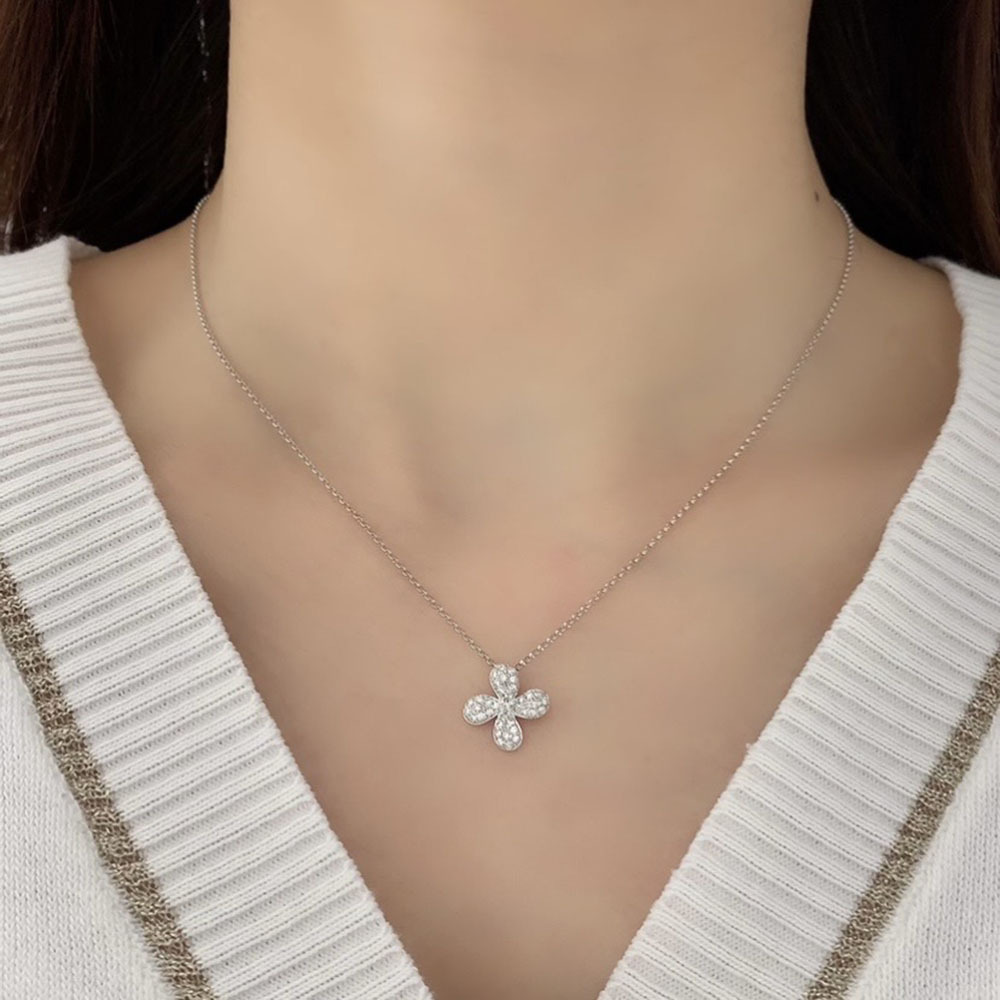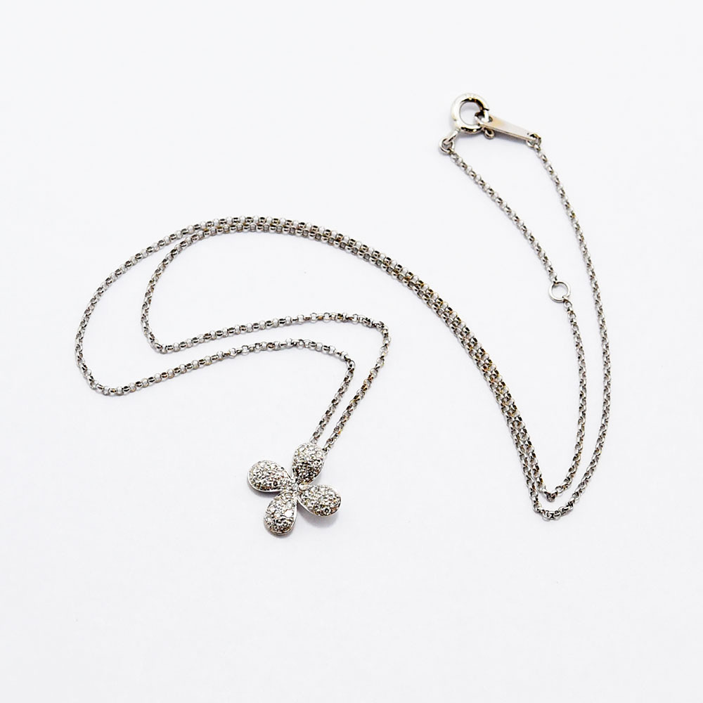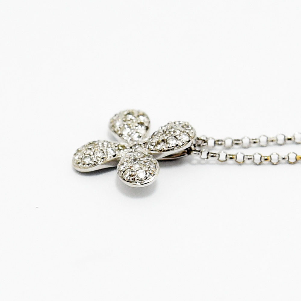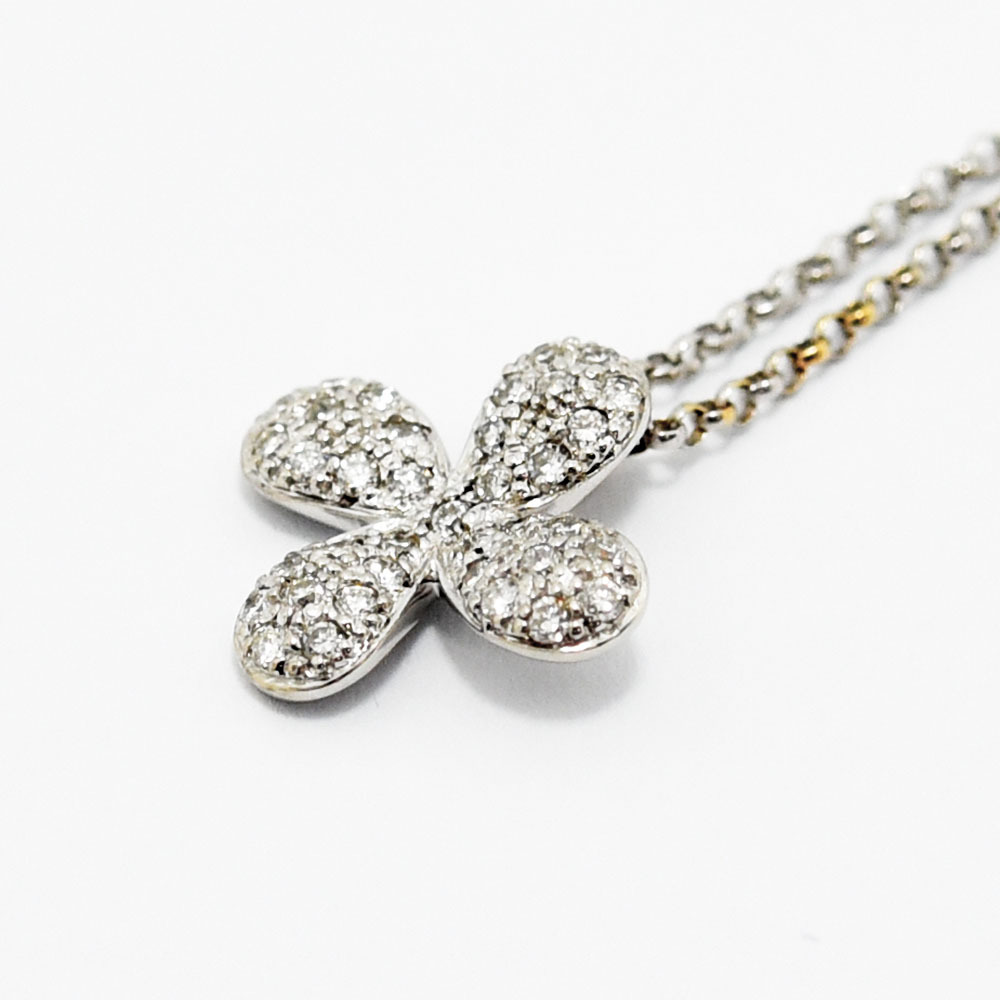 ダイヤモンドが煌めく、可愛いらしいクローバーモチーフのヴァンドーム青山のネックレスです。新品仕上げ済みです。 |