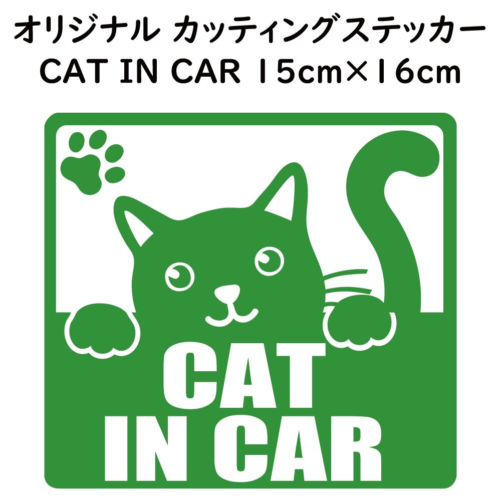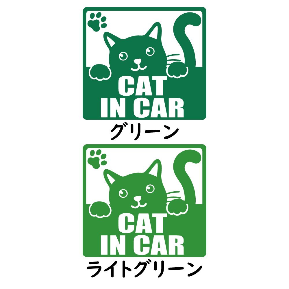 ステッカー 【 CAT in CAR キャットインカー ライトグリーン 縦15cm×横16cm 】 かわいい ネコが乗ってます 猫が乗っています