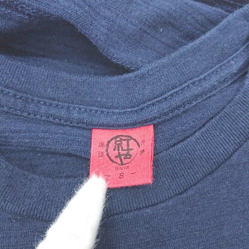 ◇ ⊂ 紅や イラストロゴプリント バックプリント 半袖 Tシャツ サイズS ネイビー マルチカラー メンズ レディース E