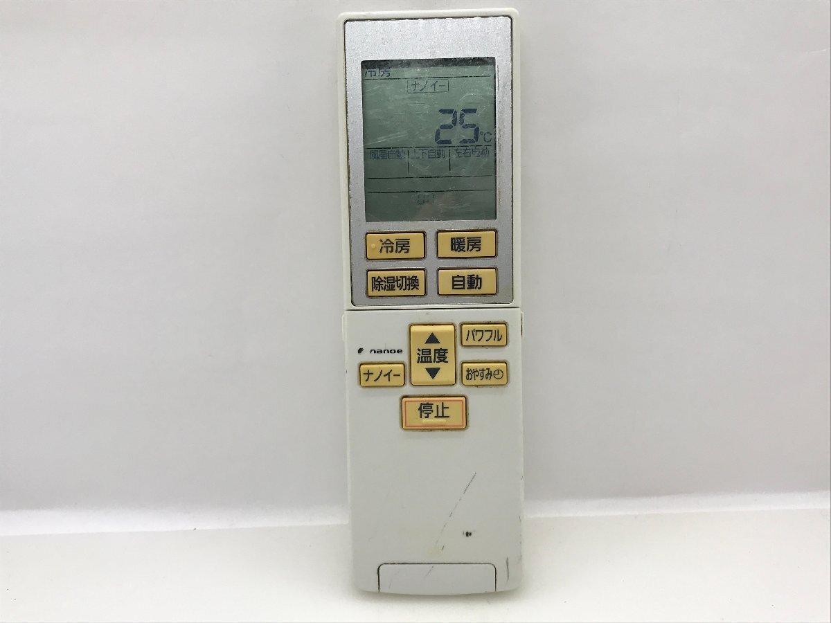 (エアコンリモコンの場合、正面からだとディスプレイ表示が薄い仕様のものもございます。不具合ではございません。)