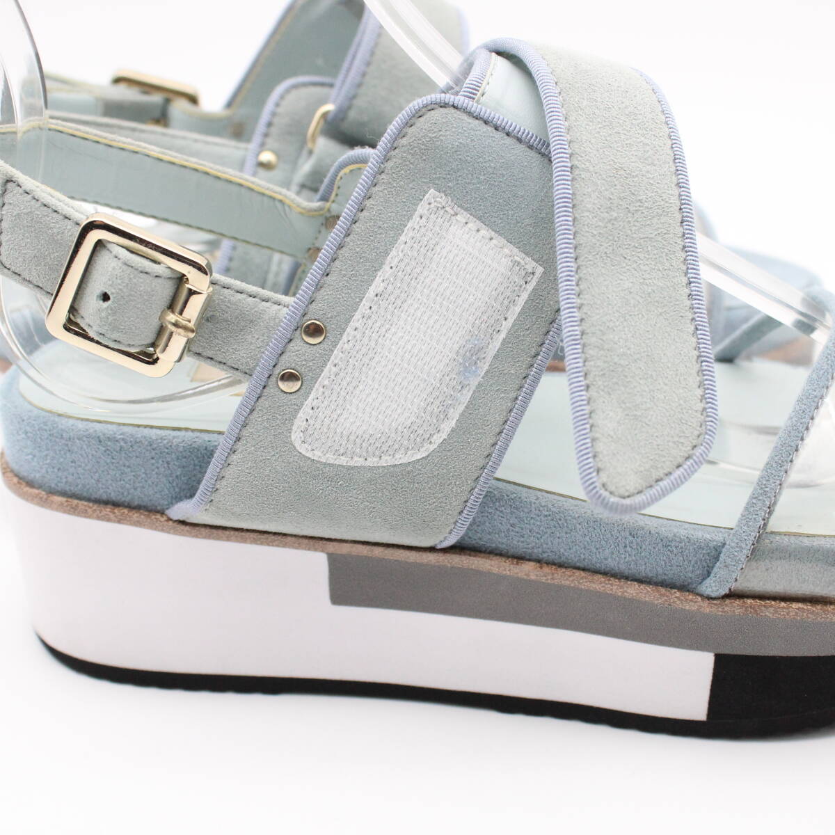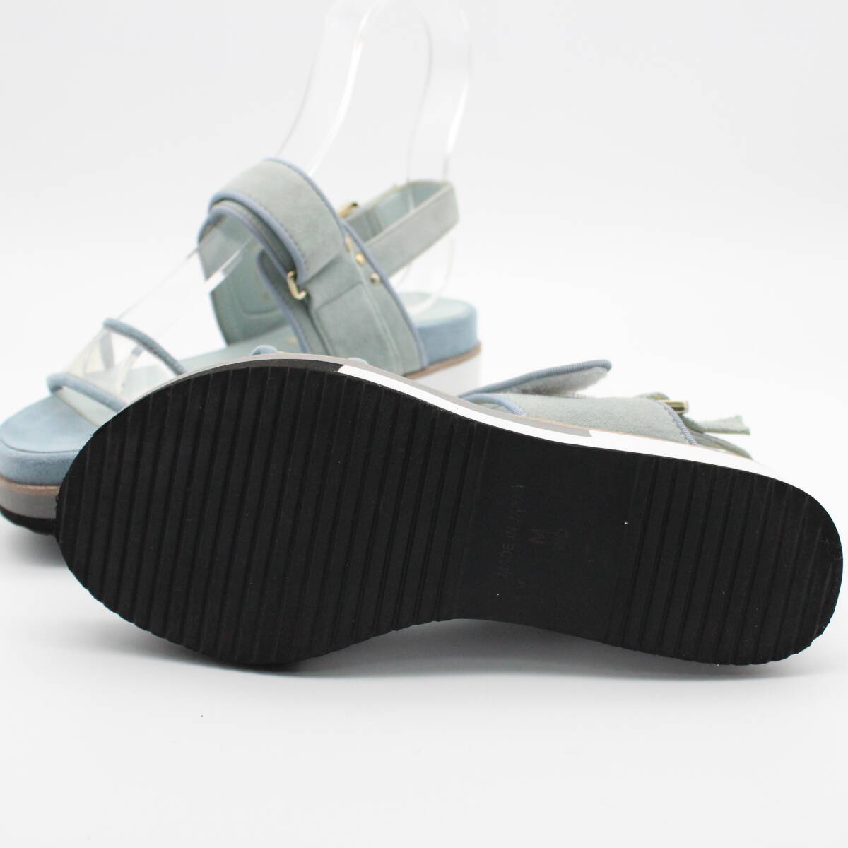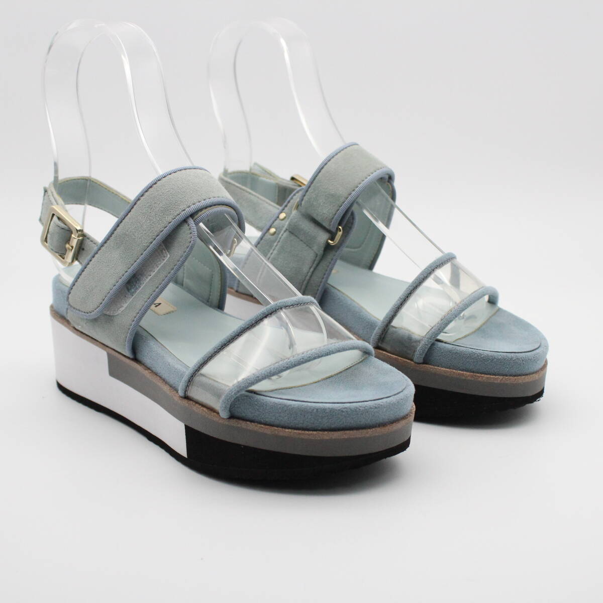 アッパーのクリアデザインとスエードの組み合わせが上品な印象に。