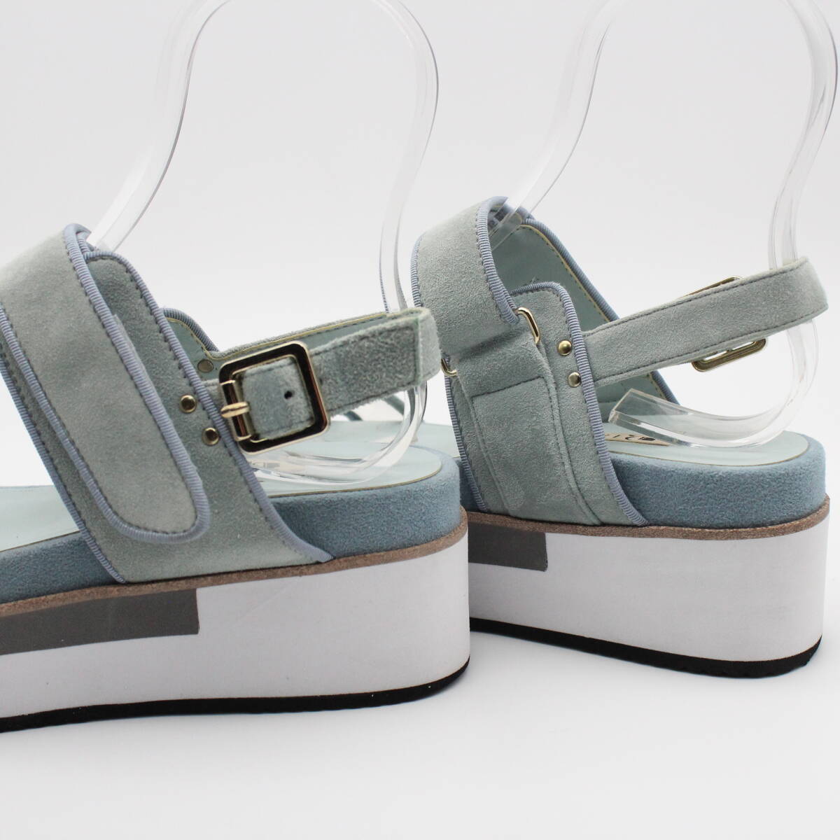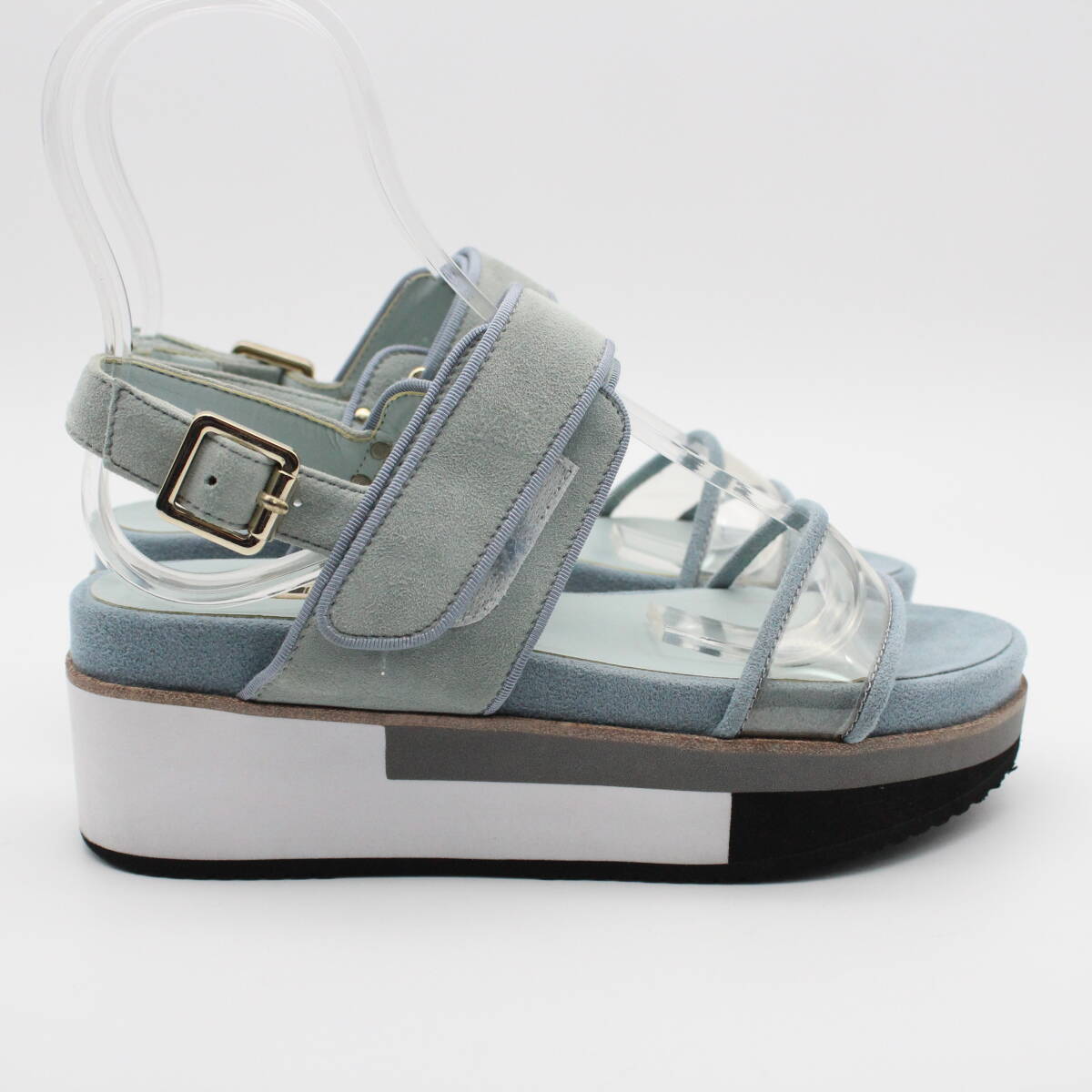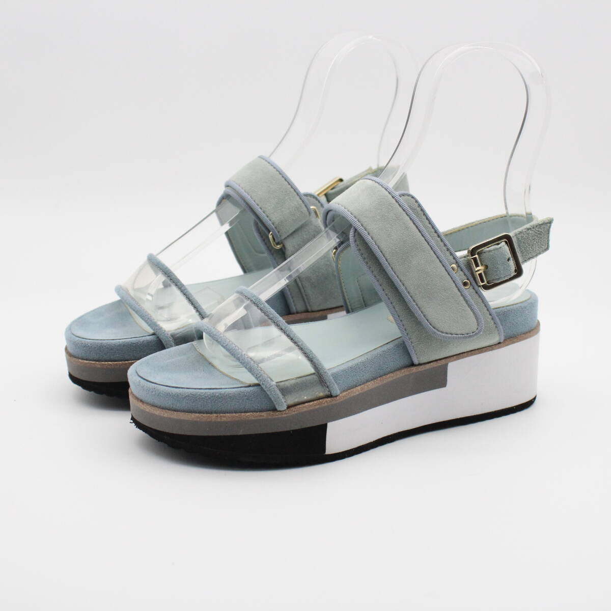 アッパーのクリアデザインとスエードの組み合わせが上品な印象に。