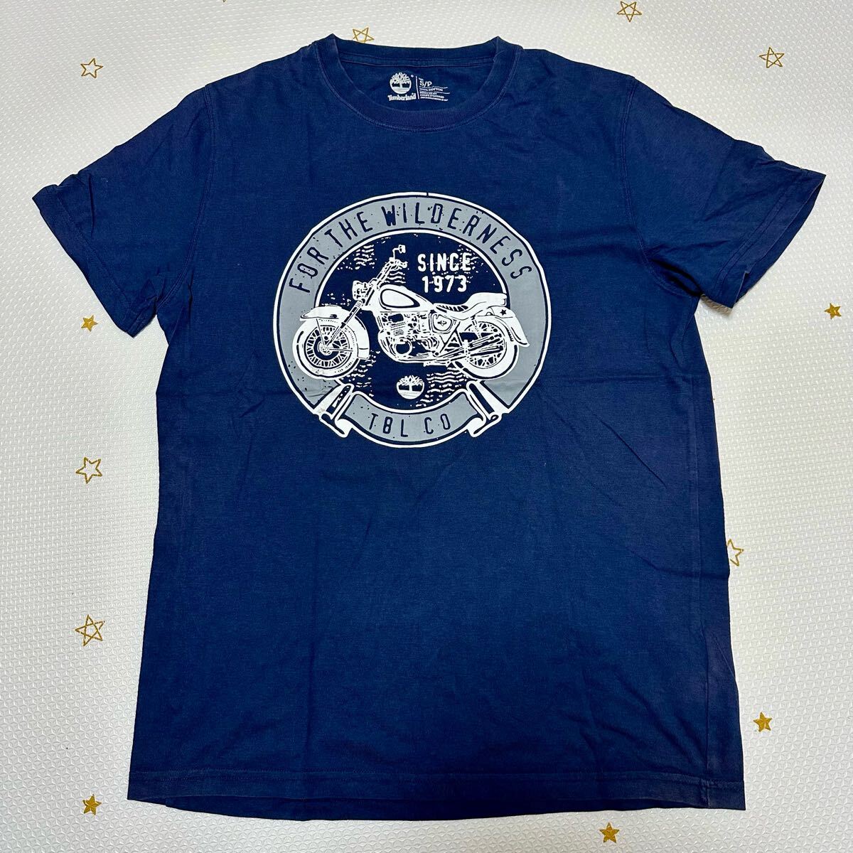 ・Timberland ティンバーランド 半袖 プリント Tシャツ S ネイビー バイク