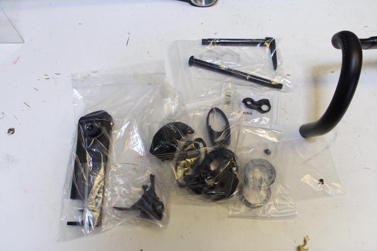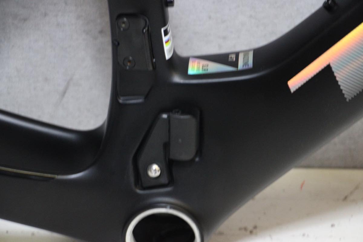 トップチューブに擦れ傷がございます。 Di2のセッティングです。機械式グロメットは付属しません。 シートポストはショートタイプでアルミレール用のセッティングです。 ハンドルステムが付属します。 社外品のダイレクトマウントハンガーに換装されていますが、純正のノーマルハンガーも同梱します。 販売証明書を発行致します。 ※お送り先とご希望名義が異なる場合はオーダーフォーム備考欄に明記して下さい。 ※詳しくは画像をご覧くださいませ。 |