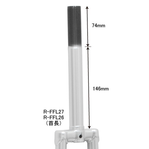 特長:ブロックダイナモなどのフロントライトが固定できるブラケット付きの補修用フロントフォークです。 操縦管が通常より長い「首長タイプ」です。