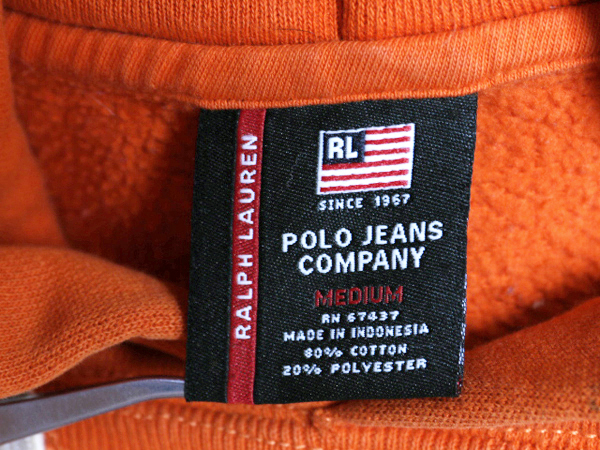 | 商品名 | ポロジーンズ ラルフローレン スウェット フード パーカー メンズ M / プルオーバー 裏起毛 ロゴ 刺繍 ヘビーウェイト トレーナー オレンジ |