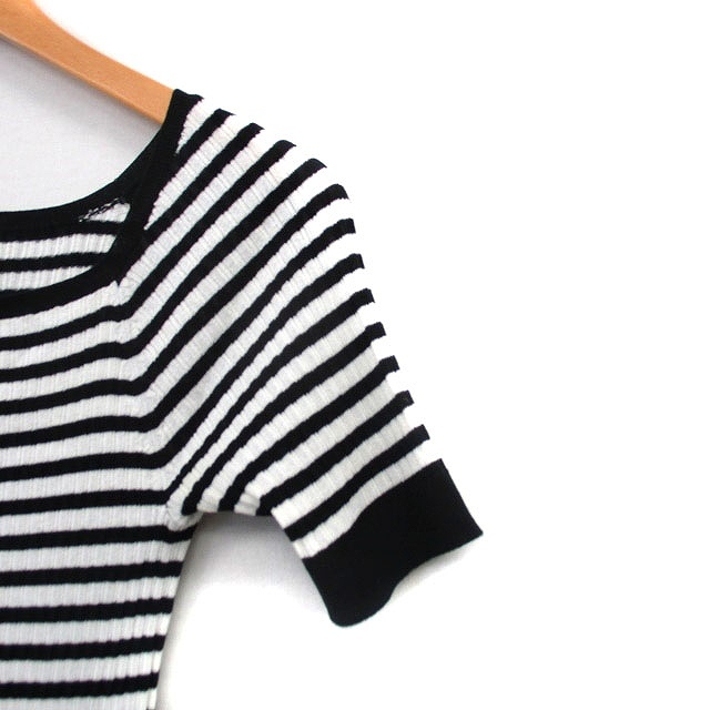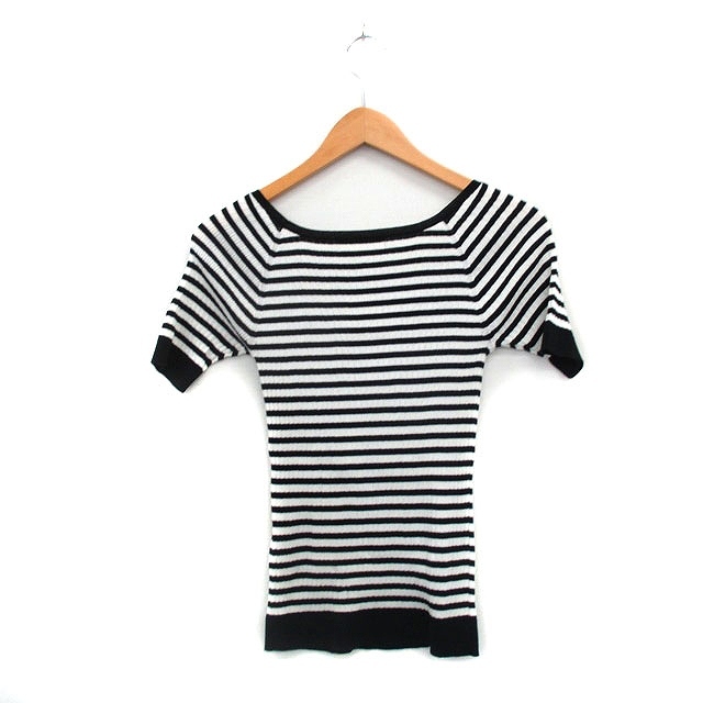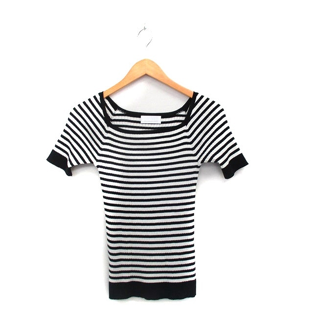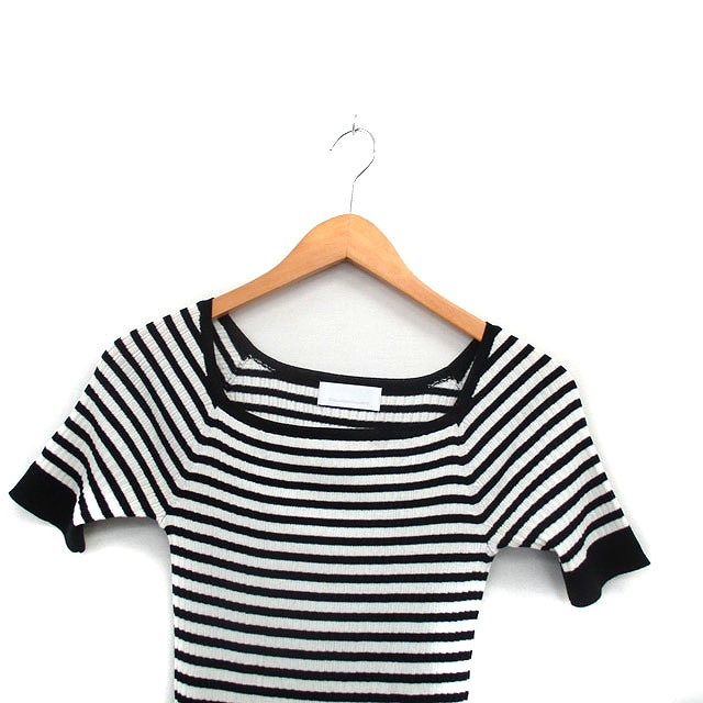ガリャルダガランテ GALLARDAGALANTE リブ ニット セーター 半袖 スクエアネック ボーダー F ホワイト 白 /KT5 レディース