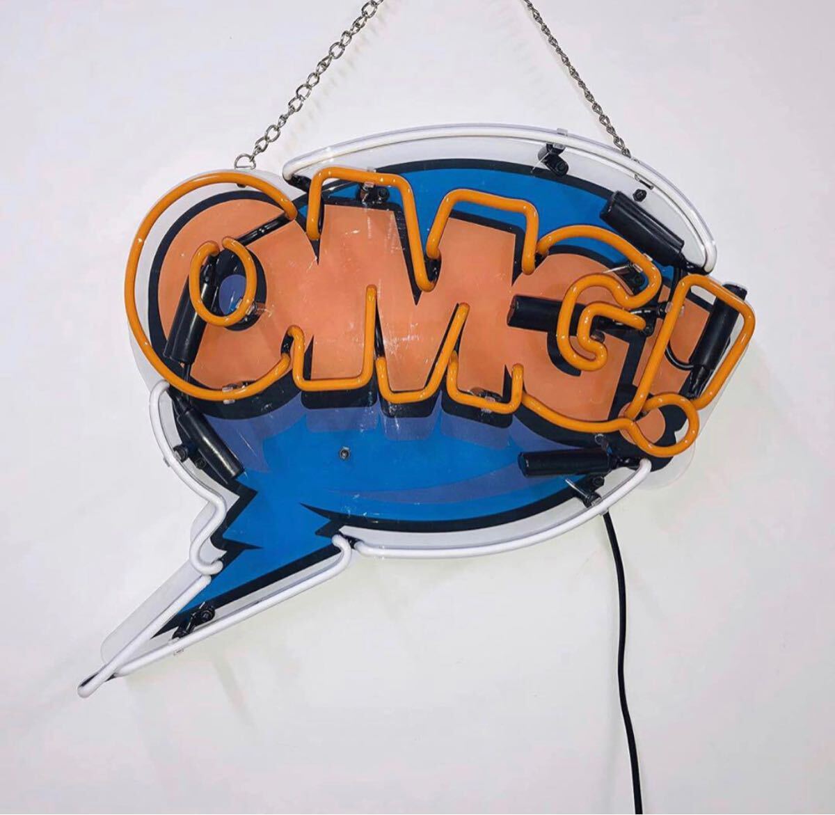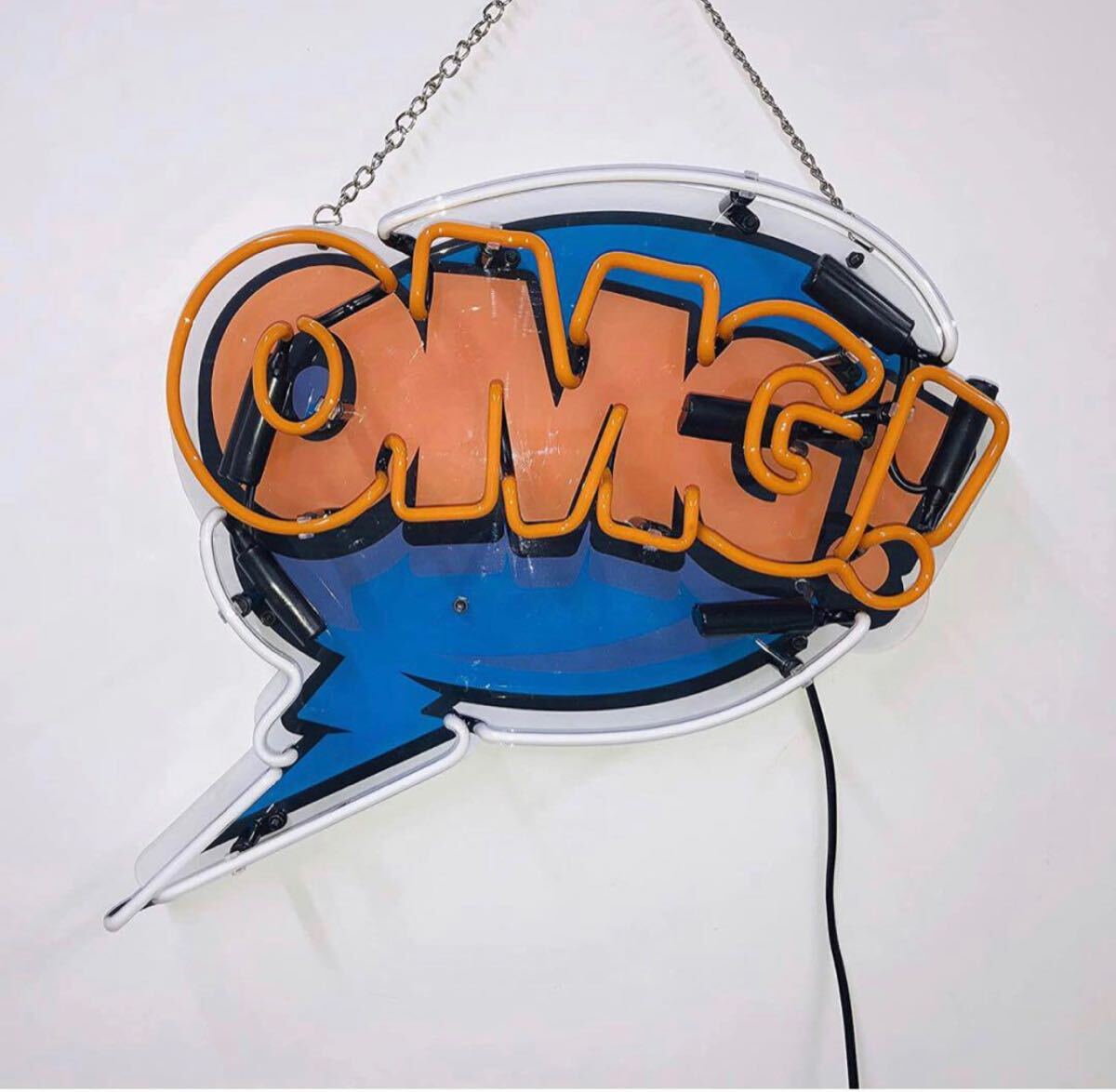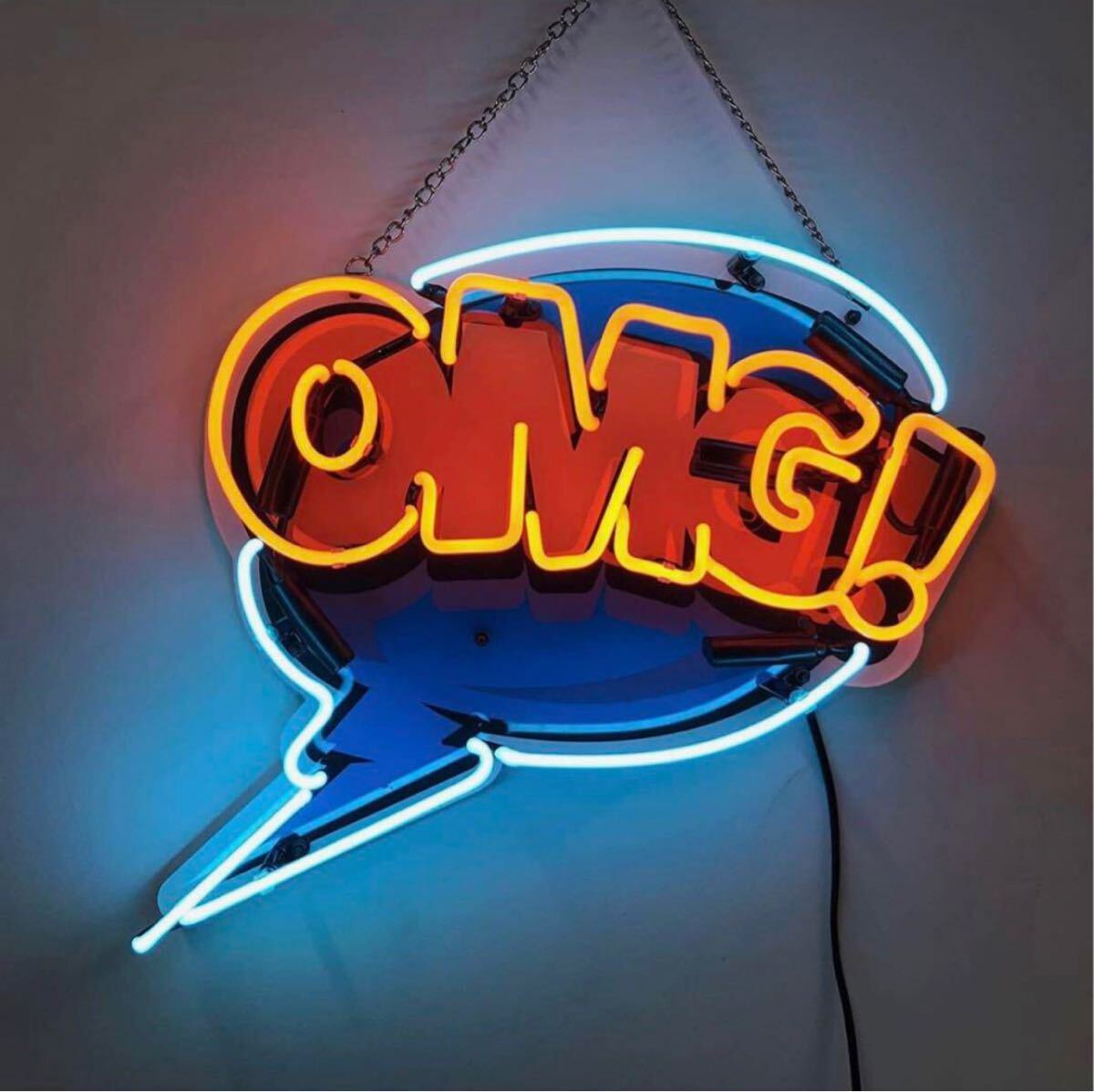 デザイン:「OMG!」という英語スラングを大胆にレタリングしたポップアート風のネオンサイン。赤・黄・青の鮮やかな色使いで、まるでアメリカンコミックの吹き出しのような存在感が特徴です。ゲームルーム、カフェ、SNS背景、キッズルームなどにおすすめ。