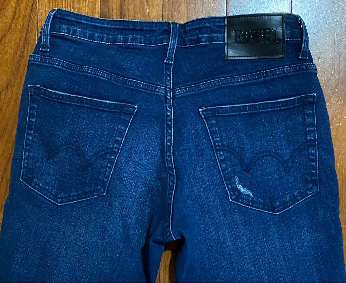 エドウィンのストレッチスキニーデニム(ジーンズ)、No.GE06です。色はインディゴブルーです。USEDですが状態は良いです(10段階中8程度)。生地はストレッチ入りで綿98%、ポリウレタン2%です。ジッパーフライ、裾はチェーンステッチです。正規品です((株)エドウイン、ベトナム製)。サイズはMでウエストは重ねずに平置きで約75cm、ヒップ約94cm、股上約23cm、股下約75cm、股下15cmのふともも部分約46cm、裾まわり約31cm、重量約550gです。発送はゆうパケットポストになります。