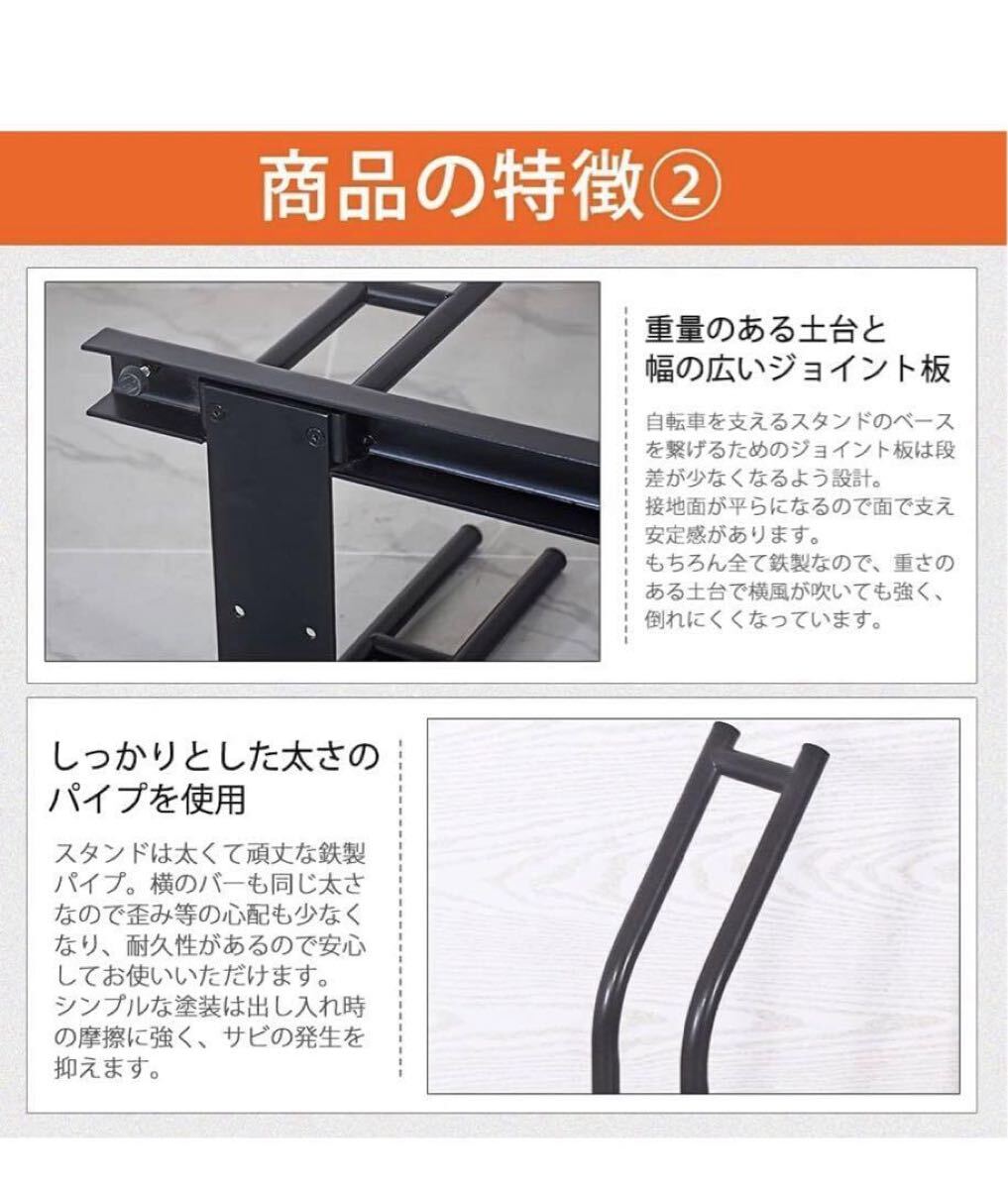 もたせることで、横風にも強い安定した自転車スタンドです。