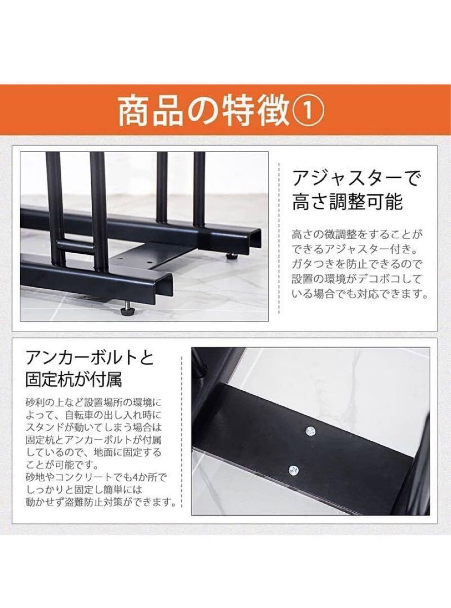 【新品即決】自転車スタンド(3台用)アンカーボルト 固定杭付き 高さ調整可能 自転車置き場