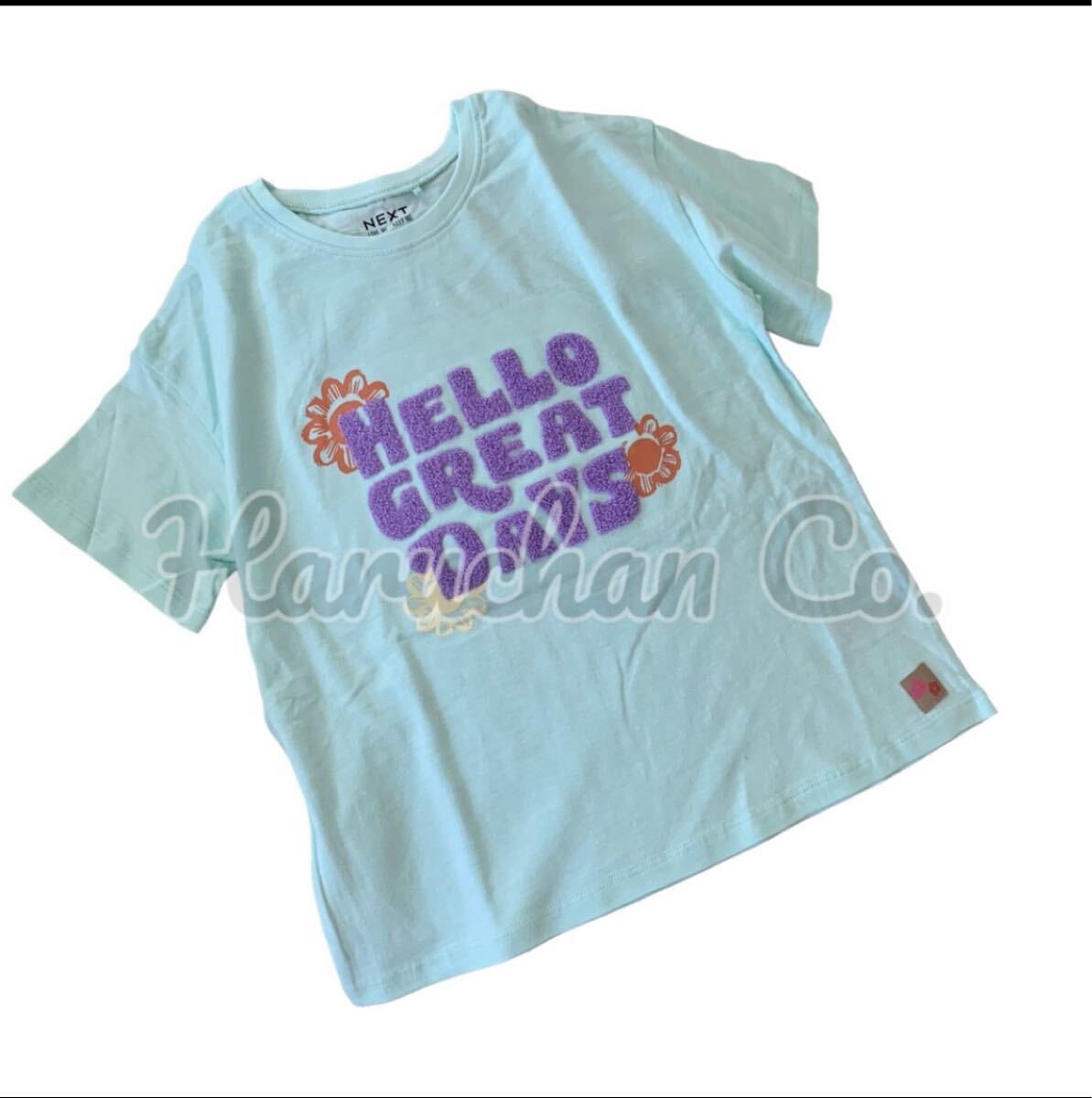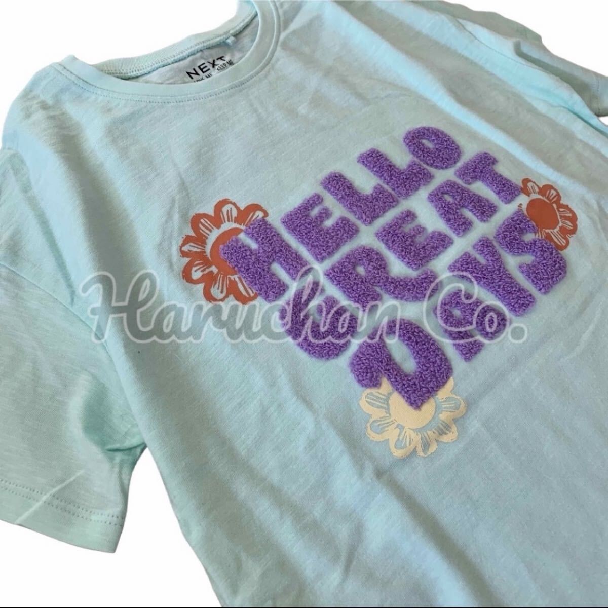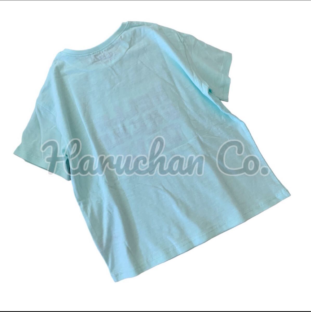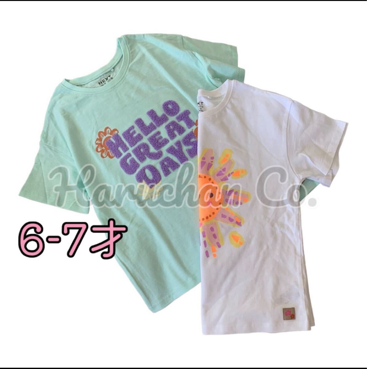 ミントグリーンにパープルのもこもこロゴワッペンと、夏空に映える真っ白なニコニコの太陽のプリントがかわいいTシャツ2枚セット♪