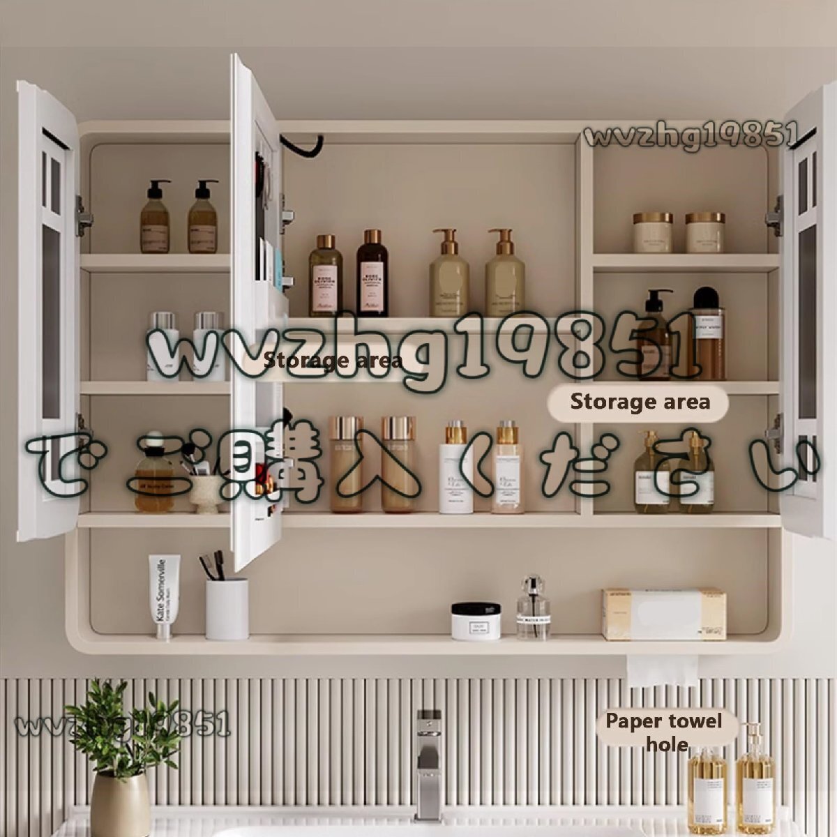 AYHARYLH ミラーキャビネット 洗面所 照明付き 浴室??LEDライトとミラー付き 浴室お風呂 鏡スマート調光機能付き 洗面 化粧台LEDライト付き 浴室キャビネットインテリジェントな曇り止め 現代の知性浴室キャビネット 曇り止め 浴室の壁のキャビネット  洗面所 ミラーキャビネットペーパータオルスロット