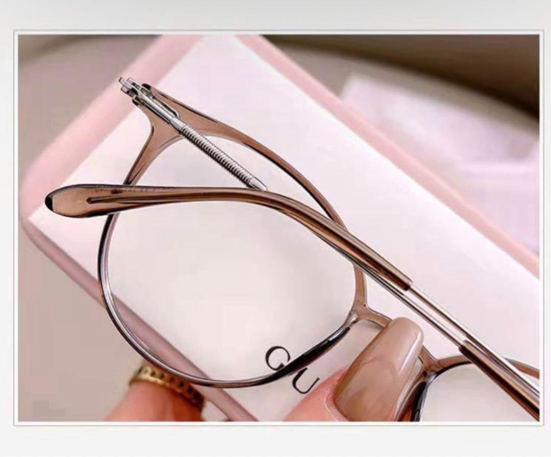 こちらはおしゃれなスケルトンタイプのブラウンフレームです。装着した印象も文字通り自然で透明感があって様々なファッションにマッチします。