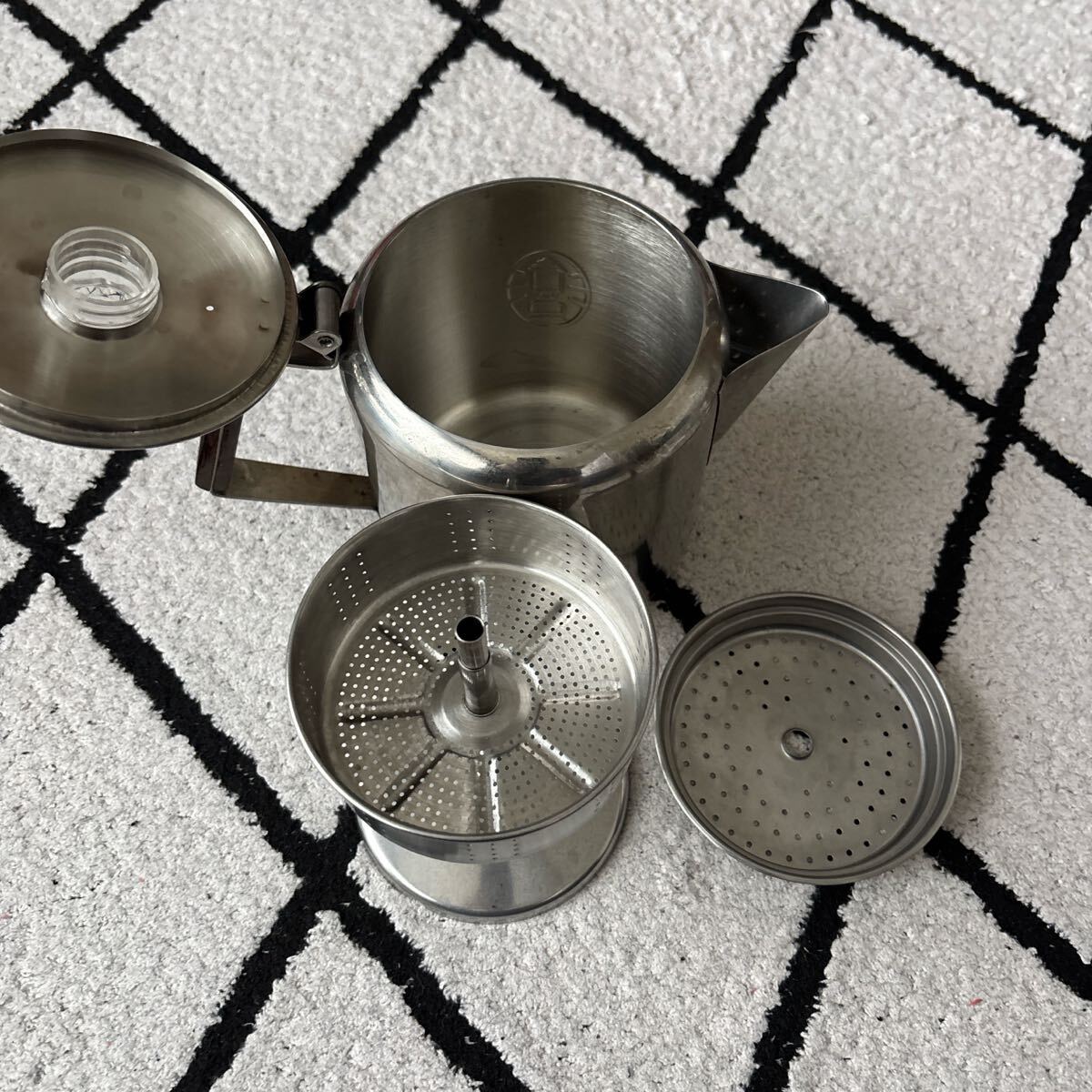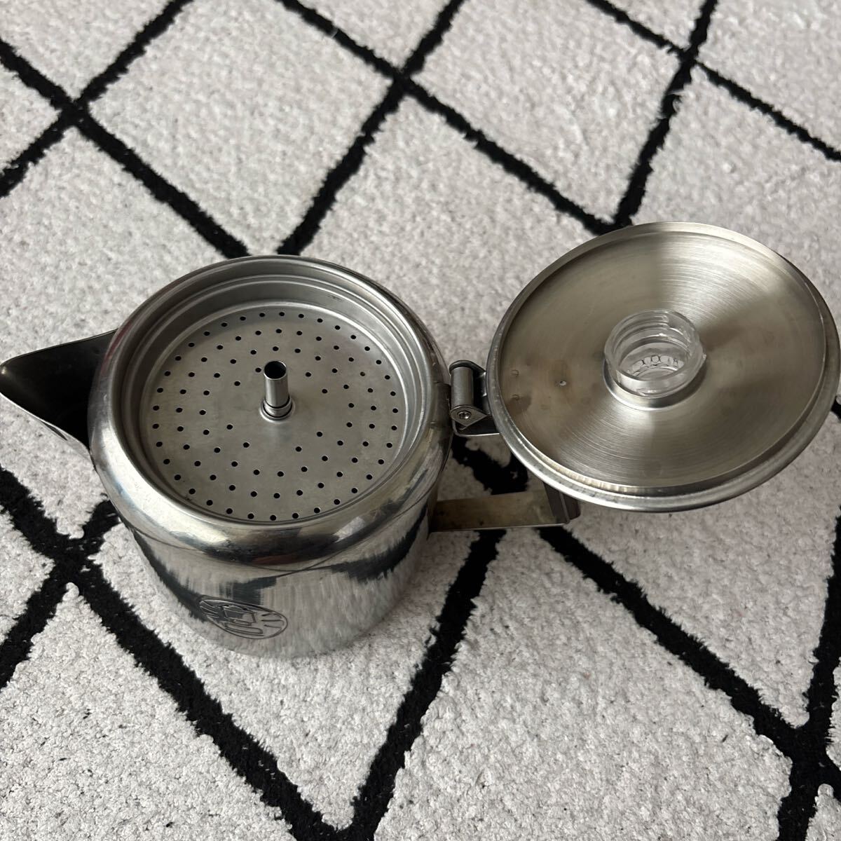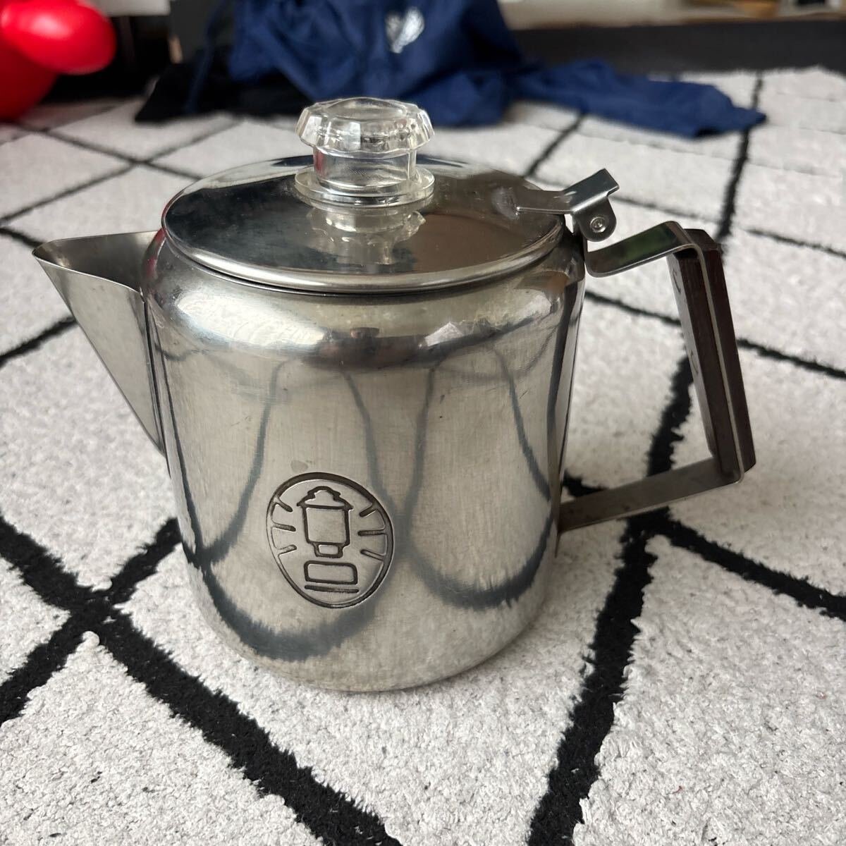 Colemanのステンレス製 パーコレーターを出店します。使用品につき、汚れや傷などありますが、程度は良い方かと思います。最大6杯分のコーヒーを抽出できるようです。やかんとしても使えそうですね。是非この機会に!