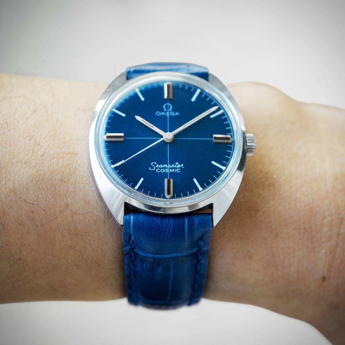 (741) 極美稼動品 ★ オメガ シーマスター コスミック 手巻き ★ 60年代 青文字盤 日差9秒 アンティーク | |||