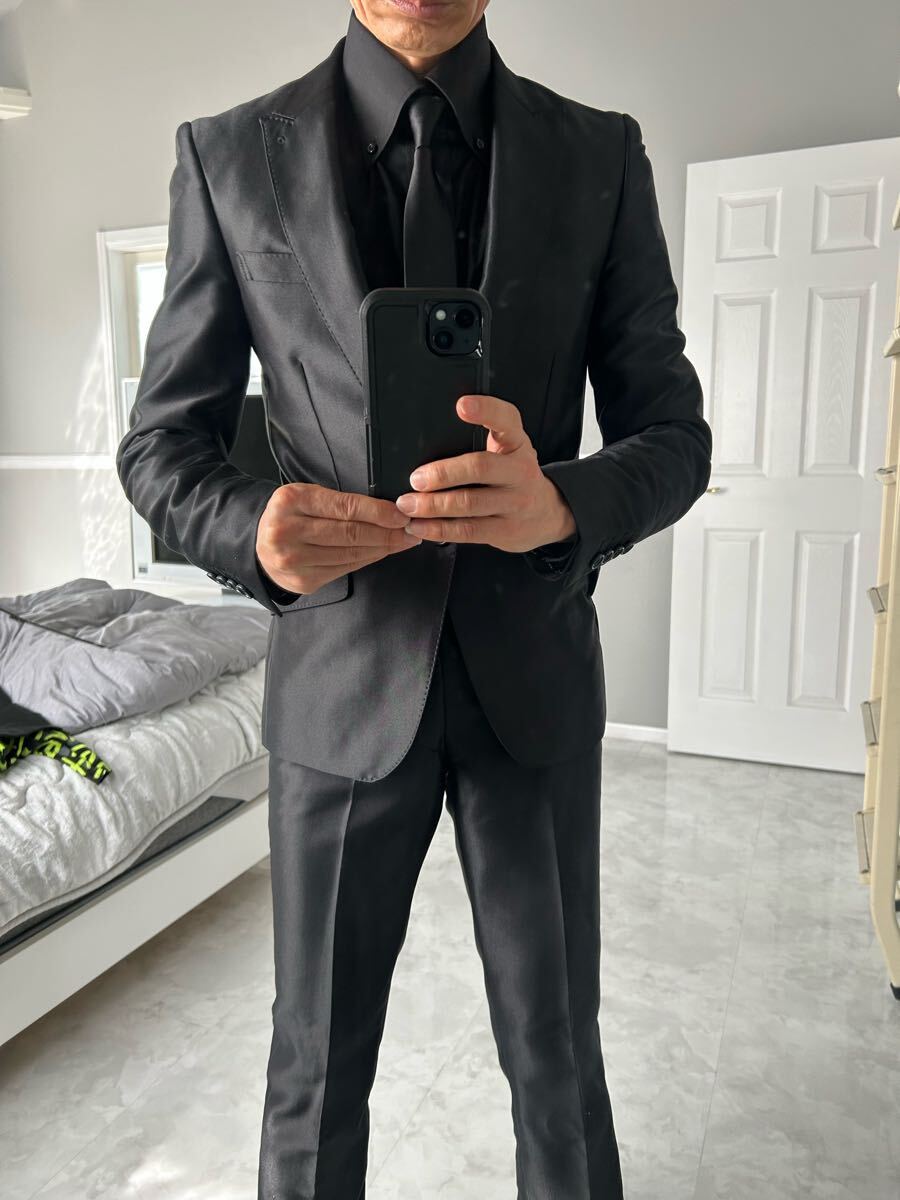 身長165cm前後体重55kg前後でその体型に合うスーツです。