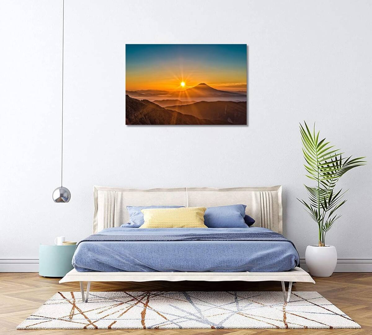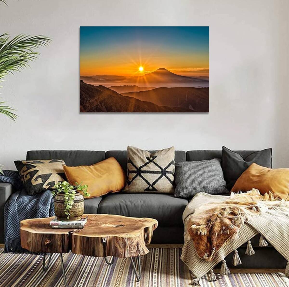 ポスター 50×75cm 富士山 02 モダンアート 風景画 絵画パネル 自然 壁掛け インテリア 夕日 木枠付き 風水 キャンバス