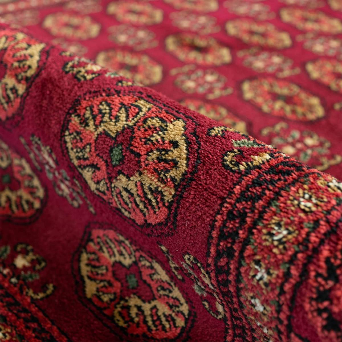 アンティークな雰囲気が魅力。パキスタン絨毯で人気の象の足跡をモチーフにした伝統のボハラ柄。