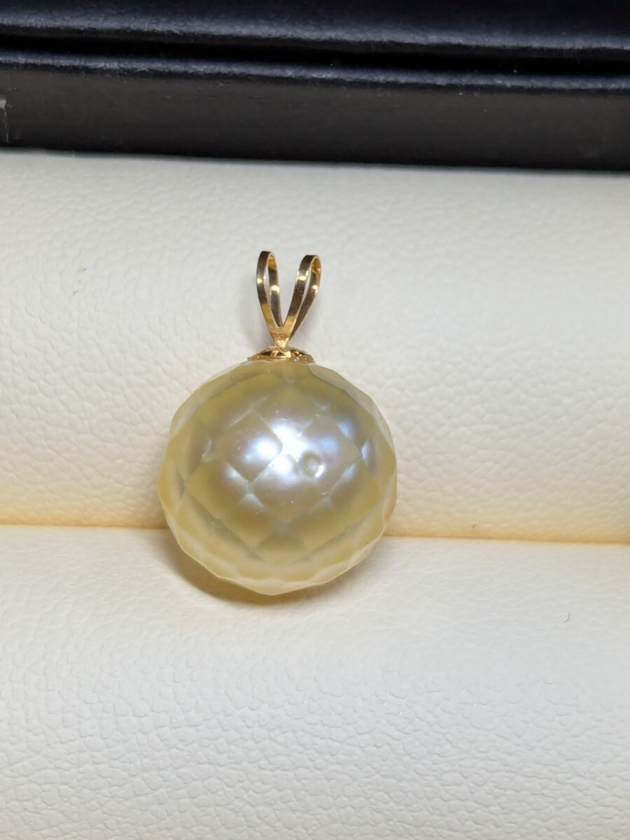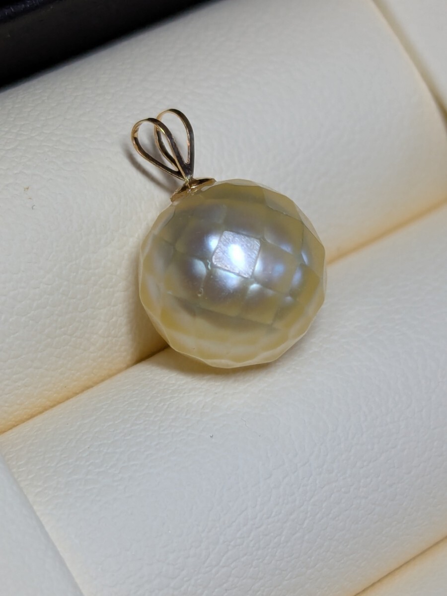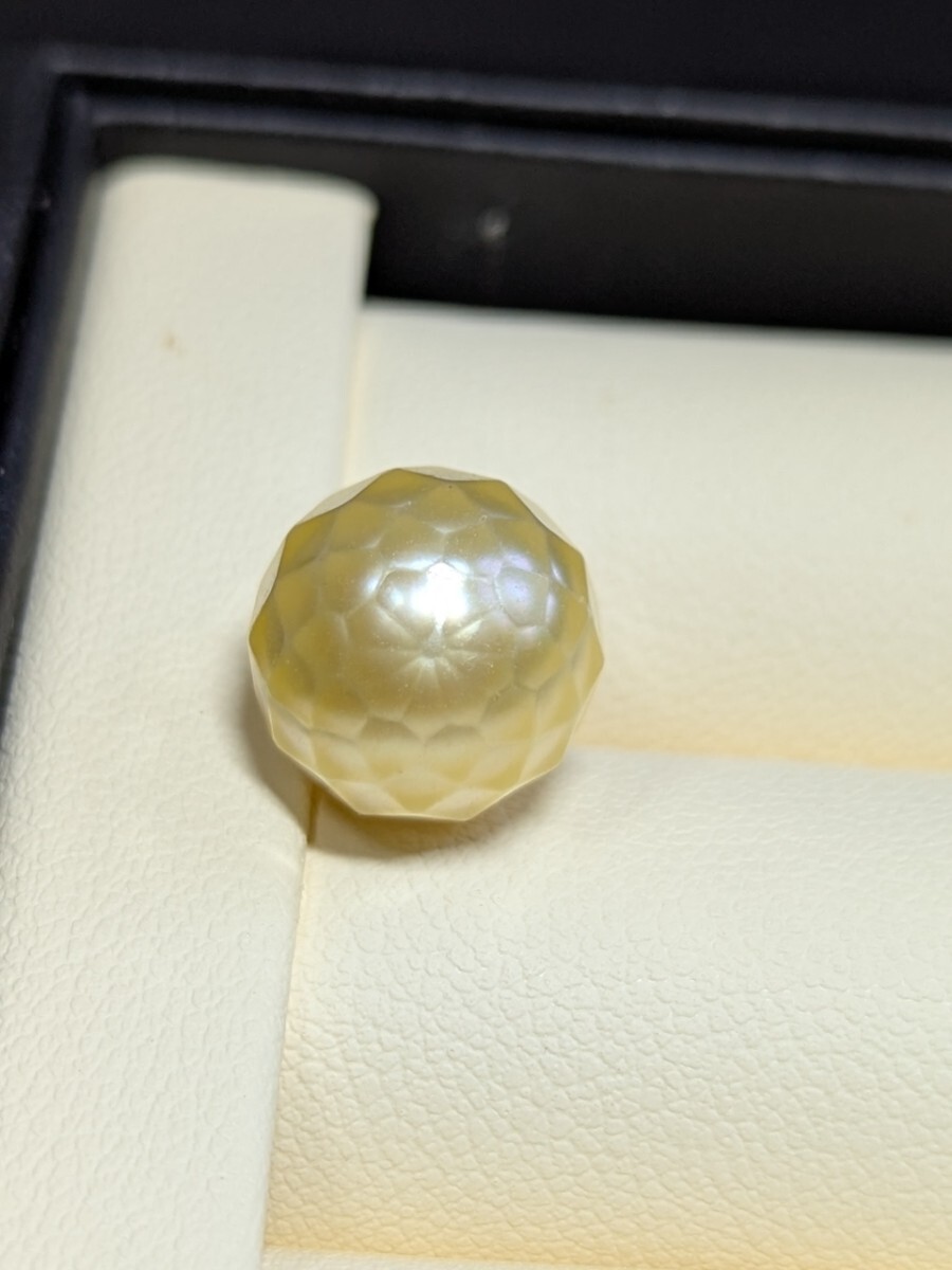 こちらはダイヤモンドのような輝きを放つ南洋華パールです。キラキラして綺麗です。
