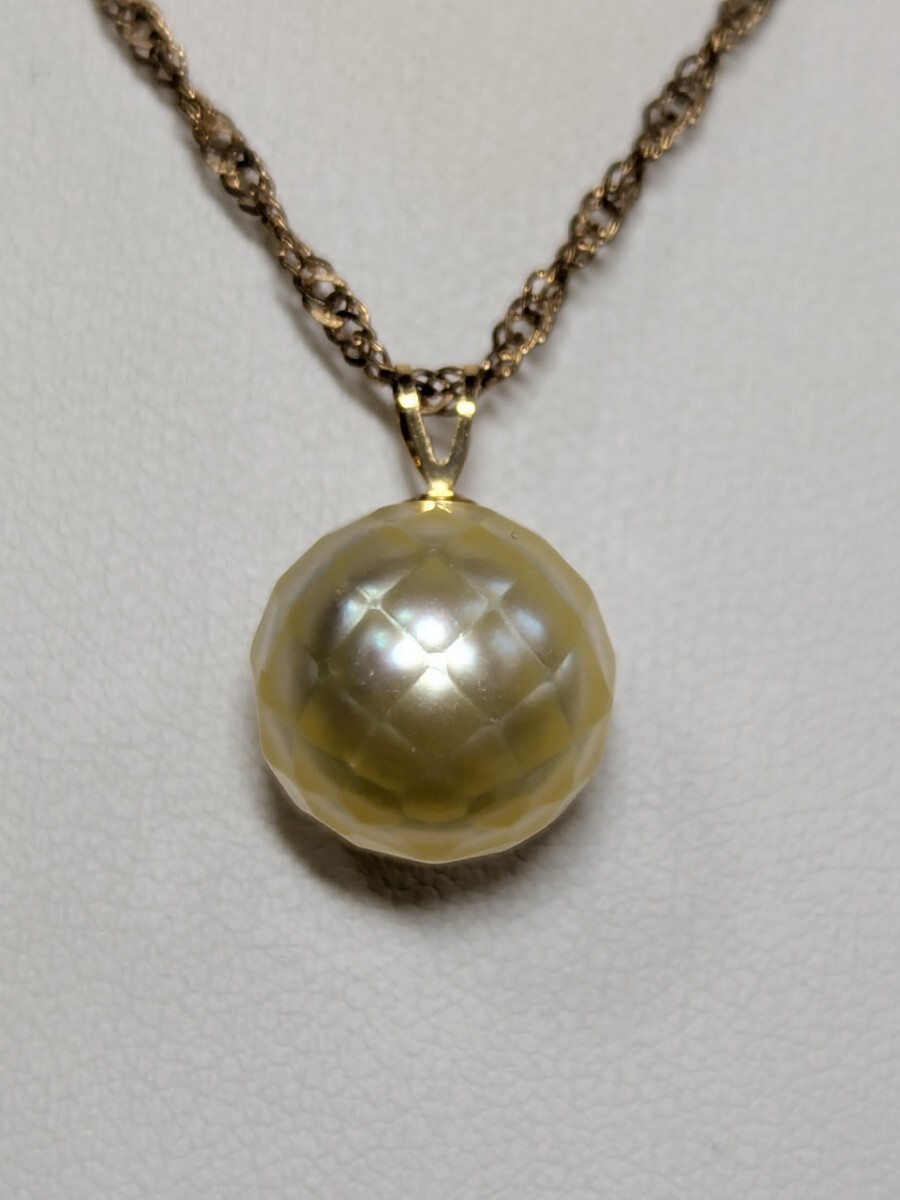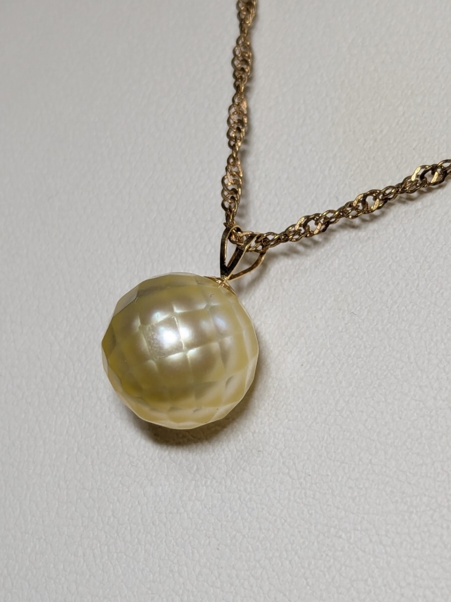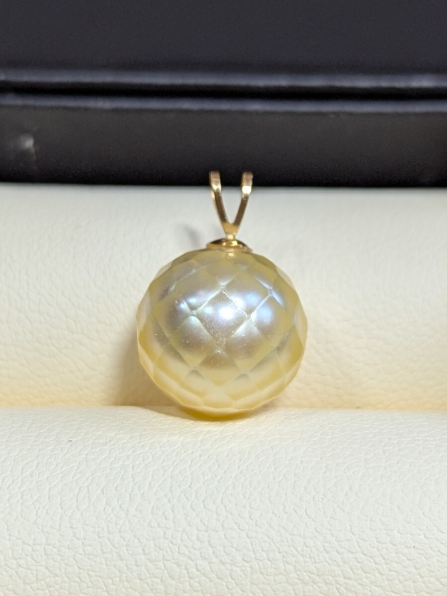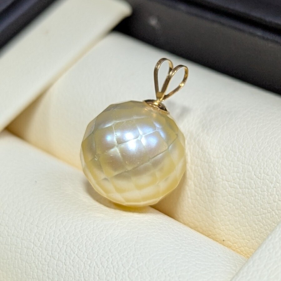 こちらはダイヤモンドのような輝きを放つ南洋華パールです。キラキラして綺麗です。