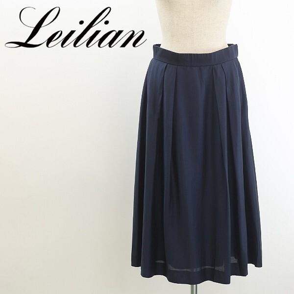◆Leilian レリアン タック フレア スカート 紺 ネイビー 9 | |