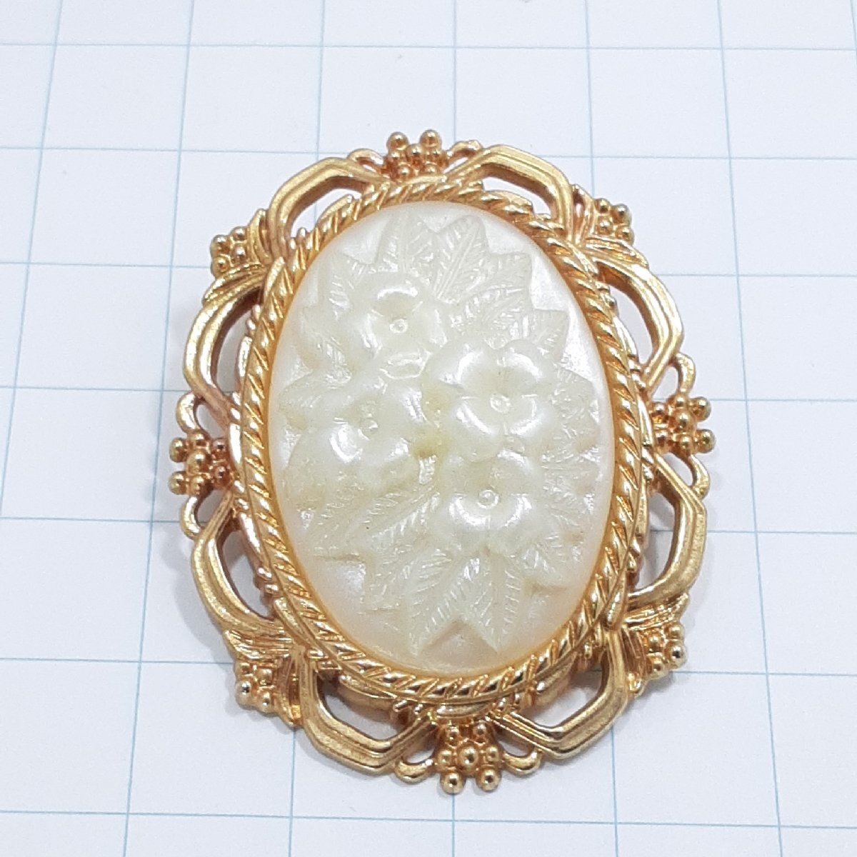 送料無料)ビンテージ☆花柄 定番エンブレム☆アンティーク ブローチ A29241