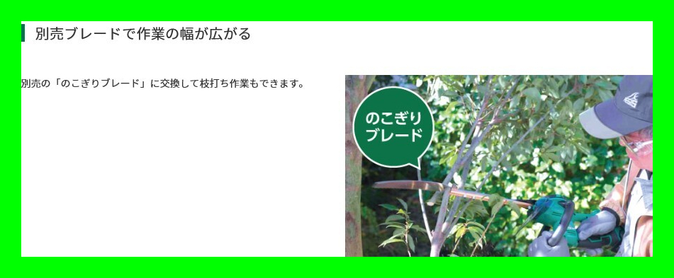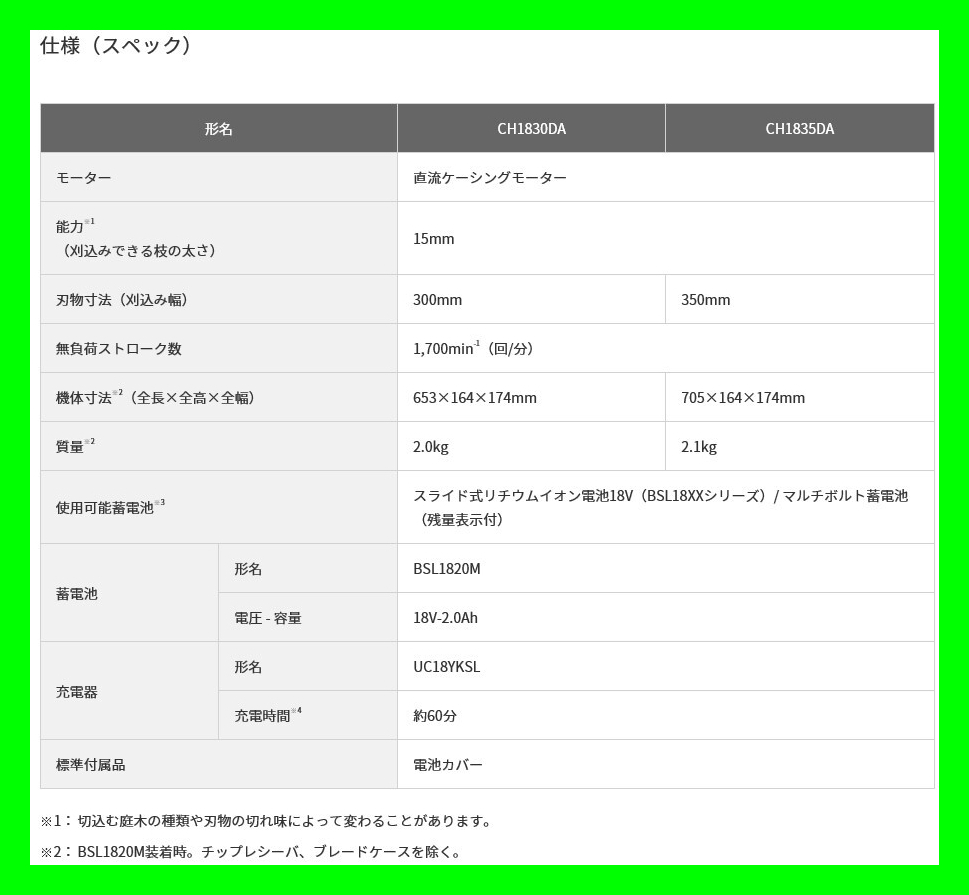 | 商品説明 | ◆コードレス&軽量で取り回しが良く、快適作業 ・電源不要・軽くて取り回しが良く、操作性の良いフロントハンドル形状で 生垣の上面・側面などの刈込みに最適 ◆チップレシーバ標準付属品 ・切った草木をキャッチしてゴミ集めが簡単 ◆別売ブレードで作業の幅が広がる ・別売の「のこぎりブレード」に交換して枝打ち作業もできる ◆簡単に交換できるらくらくブレード交換 ・ツールレスでブレードを交換できるため、 作業に合わせて簡単にブレードが交換できる 【仕様】 刈込幅:350mm 無負荷ストローク数1,700min-1(回/分) ☆本体寸法(全長×幅×高さ) 705×174×164mm 質量 2.1Kg(BSL1820M装着時) ※本体のみ(電池と充電器は別売)※ 定価¥19,300+税 |