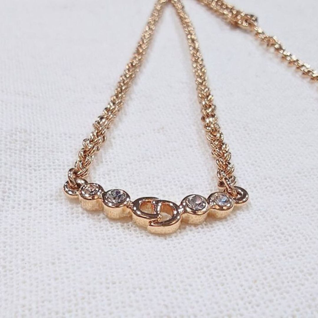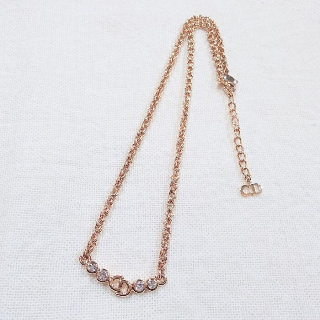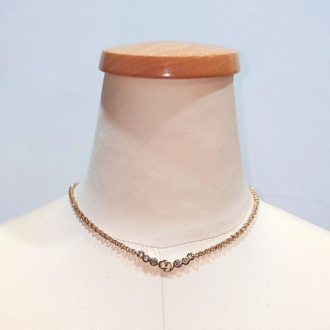 【鑑定済】ヴィンテージ Christian Dior CD クリスチャン ディオール CDロゴ ラインストーン ネックレス ゴールド【送料無料】