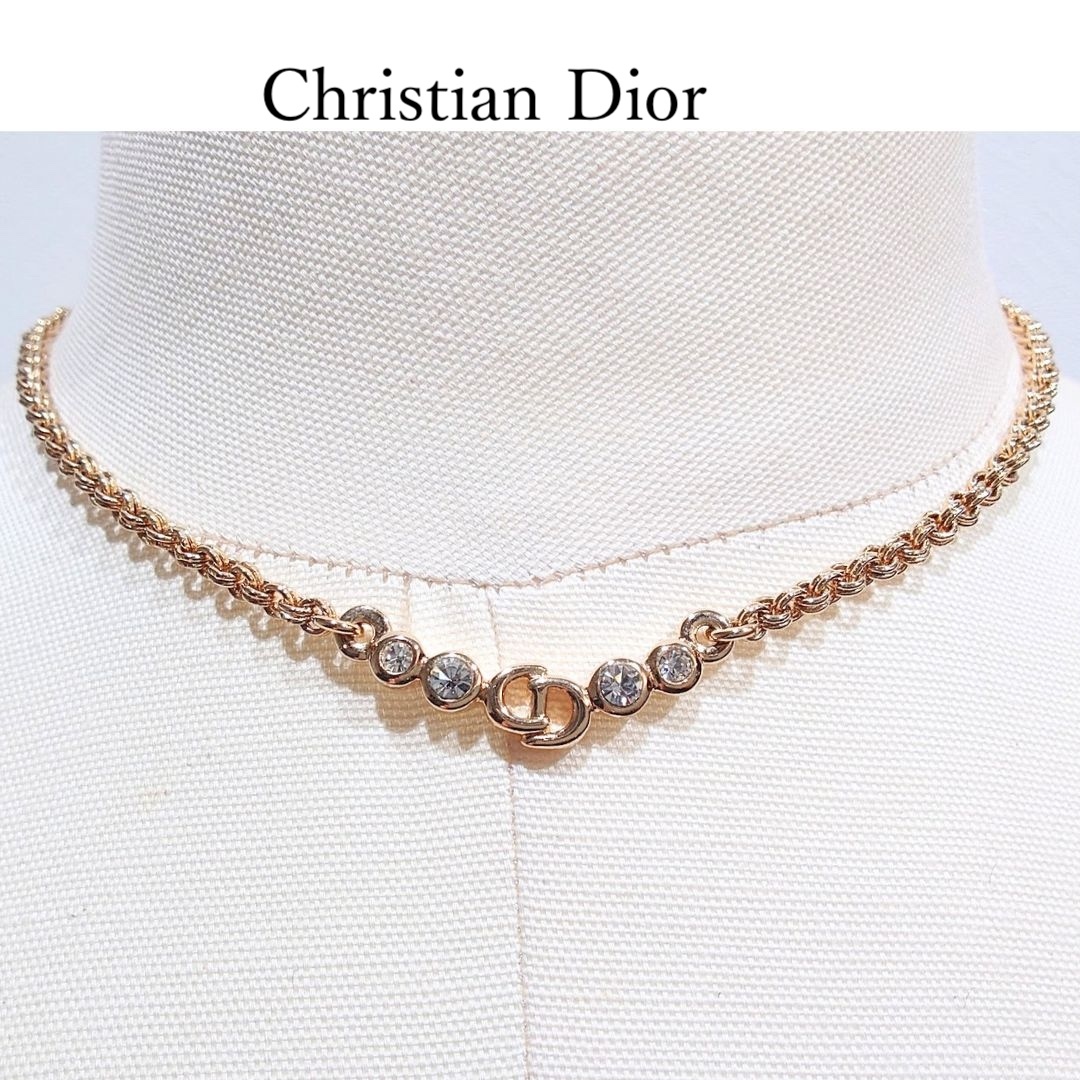 「ヴィンテージ Christian Dior CD クリスチャン ディオール CDロゴ ラインストーン ネックレス ゴールド」です。
