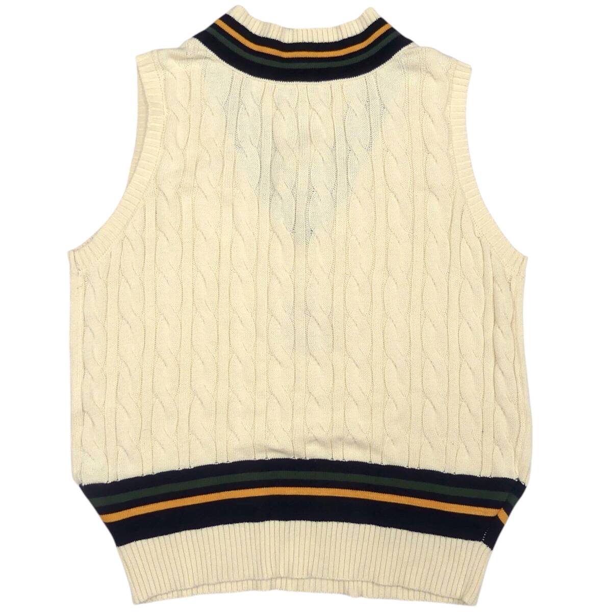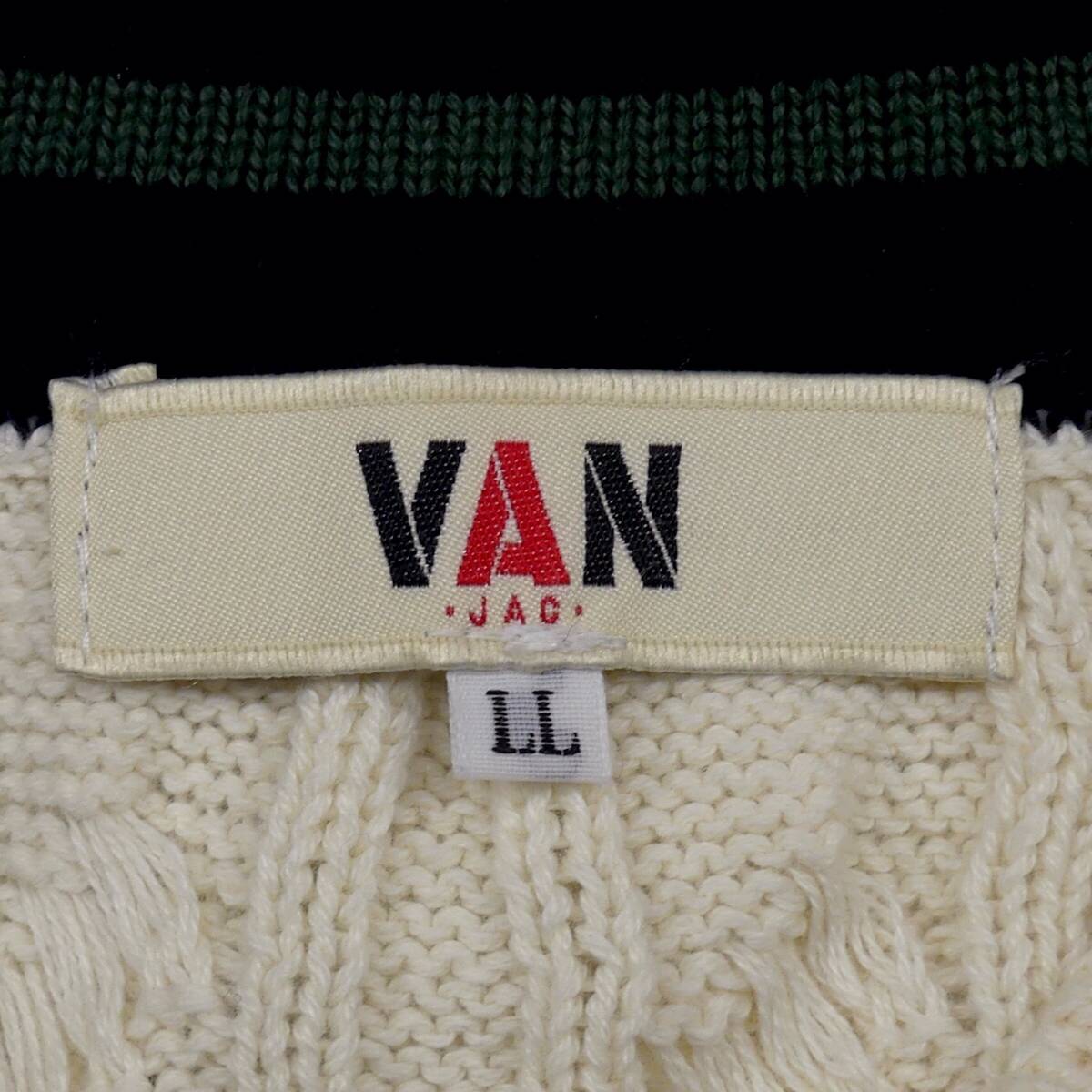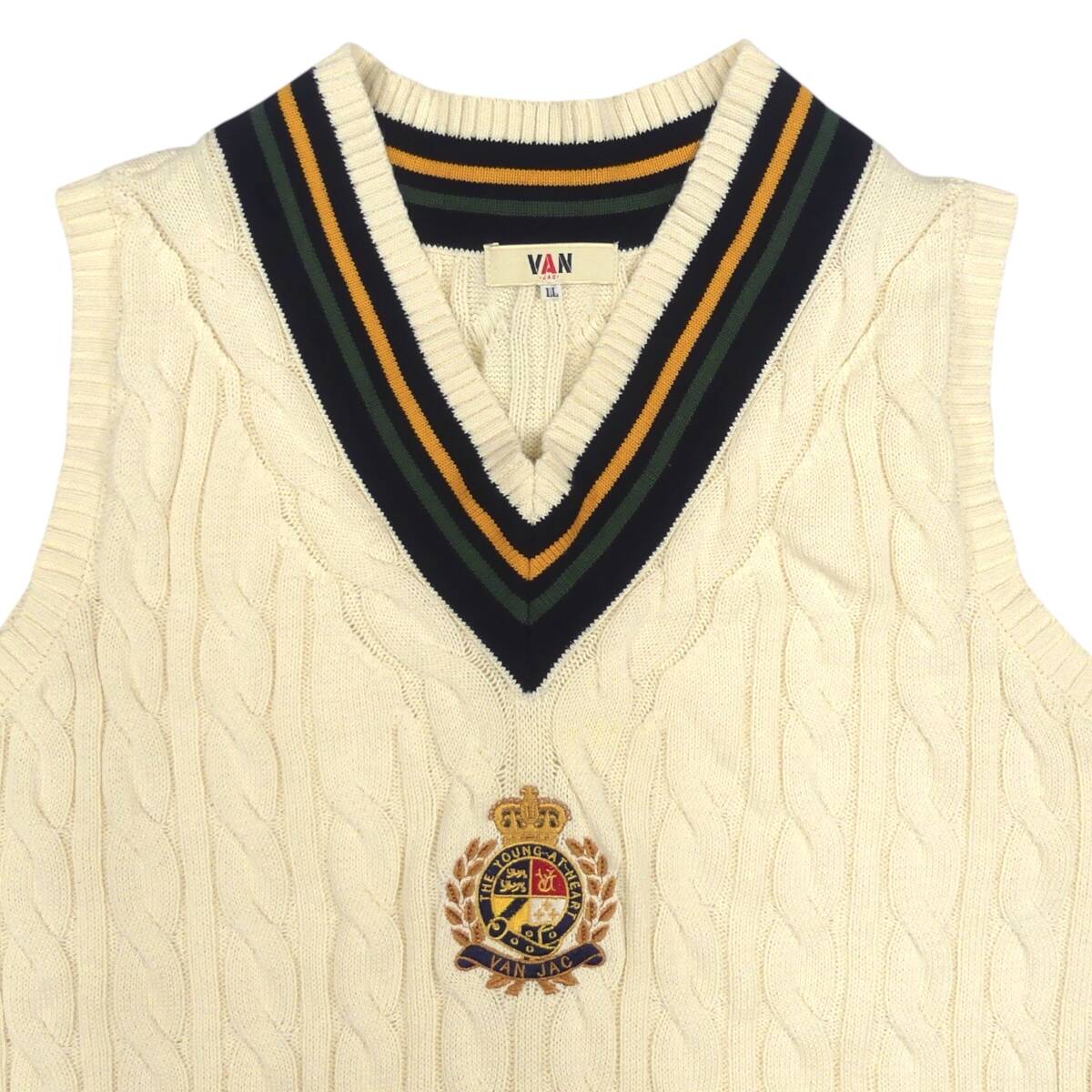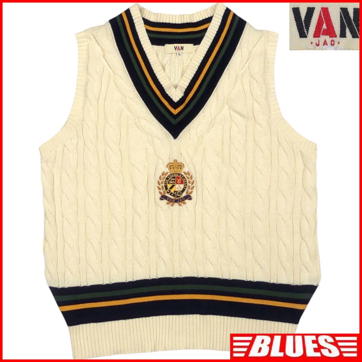 即決★VAN JAC★メンズ XL ベスト ヴァンヂャケット 白 アイボリー ケーブル編み ワッペン