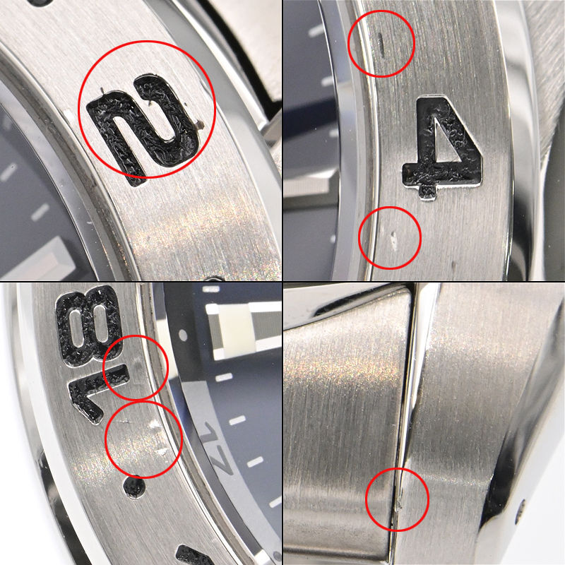 状態 | ランクA オーバーホール済みでございます。 ガラス10時~4時に光の反射でわずかに見える極微細なキズ、ベゼルに極微細な点キズと極微細な打痕、ラグエッジ1時5時に極微細な打痕、ケースサイドに微細なスレキズ、リューズと裏蓋に光の反射で見えるスレ、ブレスレットとバックルに極微細な打痕と極微細なスレ、ブレスレット裏面に微細なキズがございます。 |