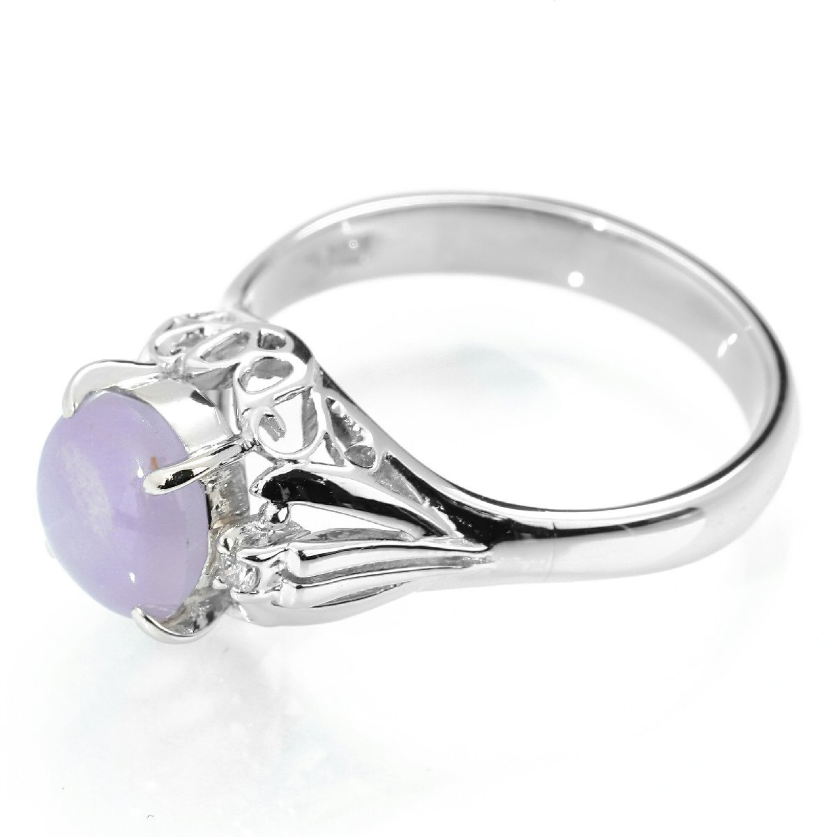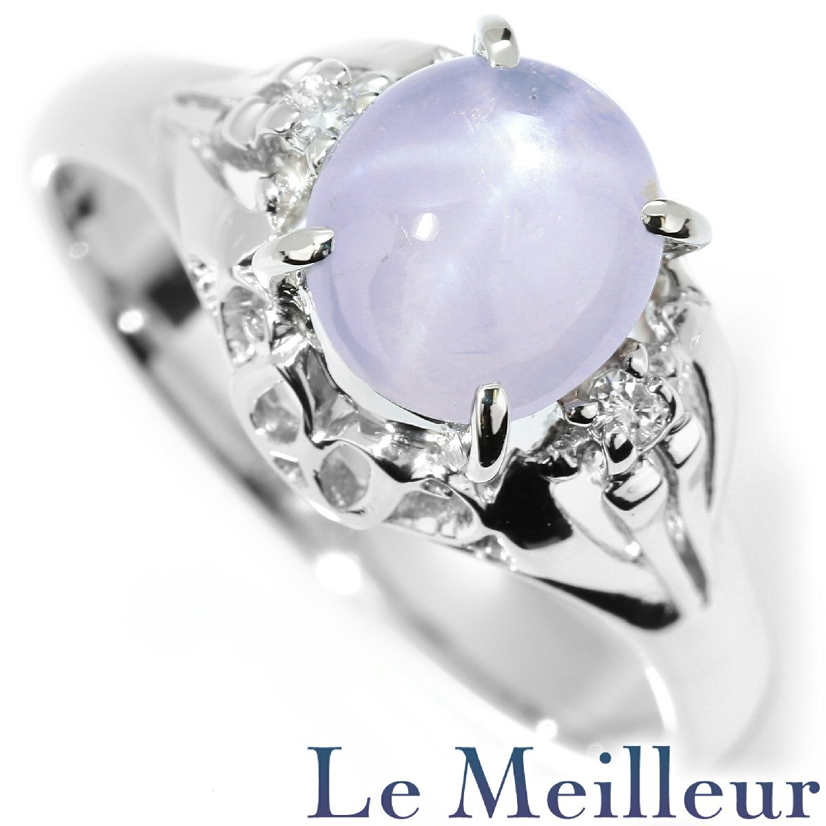 柔らかなラベンダーカラー色のスターサファイアに煌めくダイヤモンドを添えたリング。艶やかな光沢とともに鮮やかなスターラインを魅せてくれます。※裏面は研磨することによって模様が変化する可能性がございますので研磨は施されておりません。