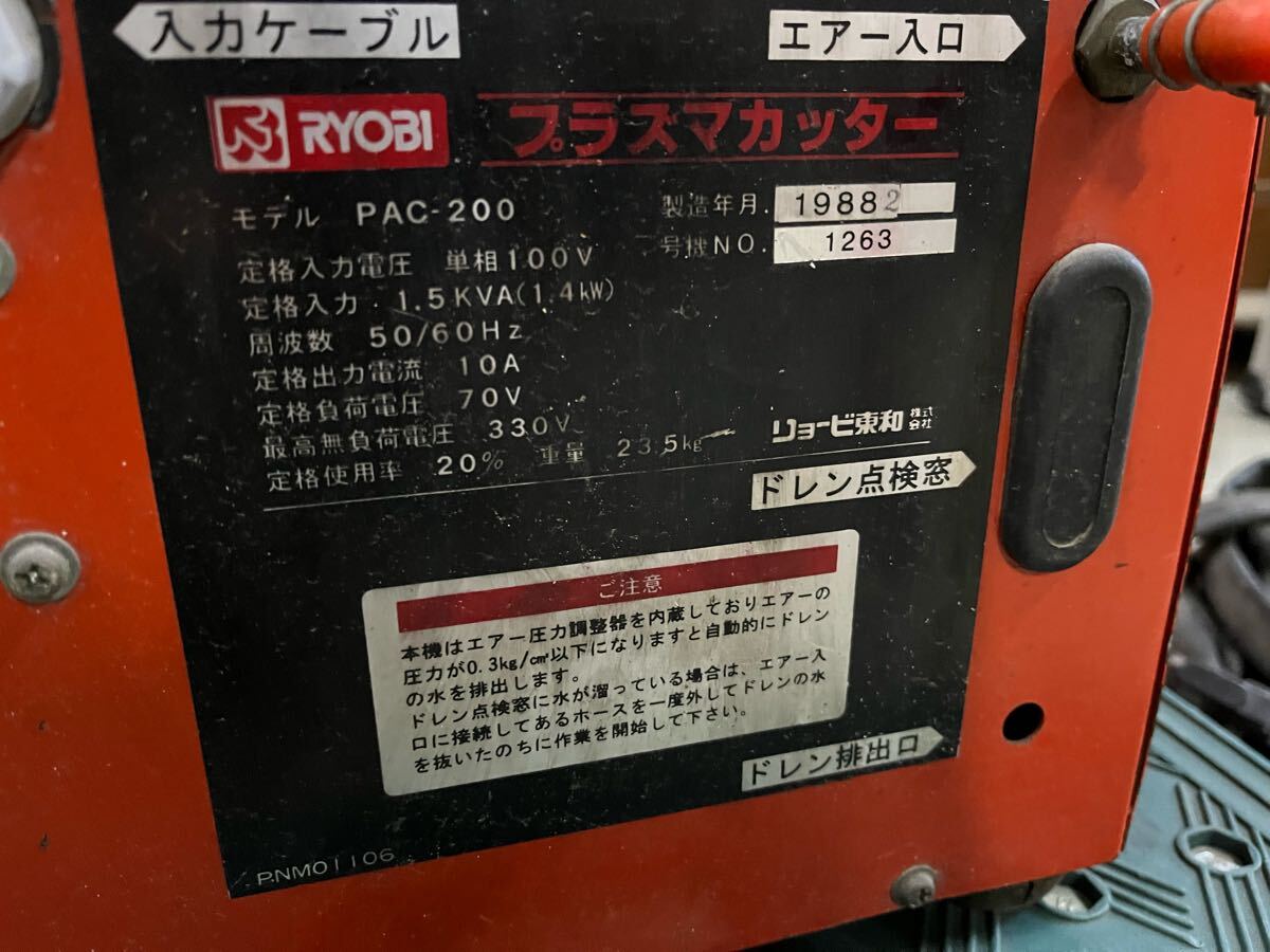 RE4007 RYOBI リョービ プラズマカッター PAC-200 プラズマ切断機 通電のみ ジャンク品 0416
