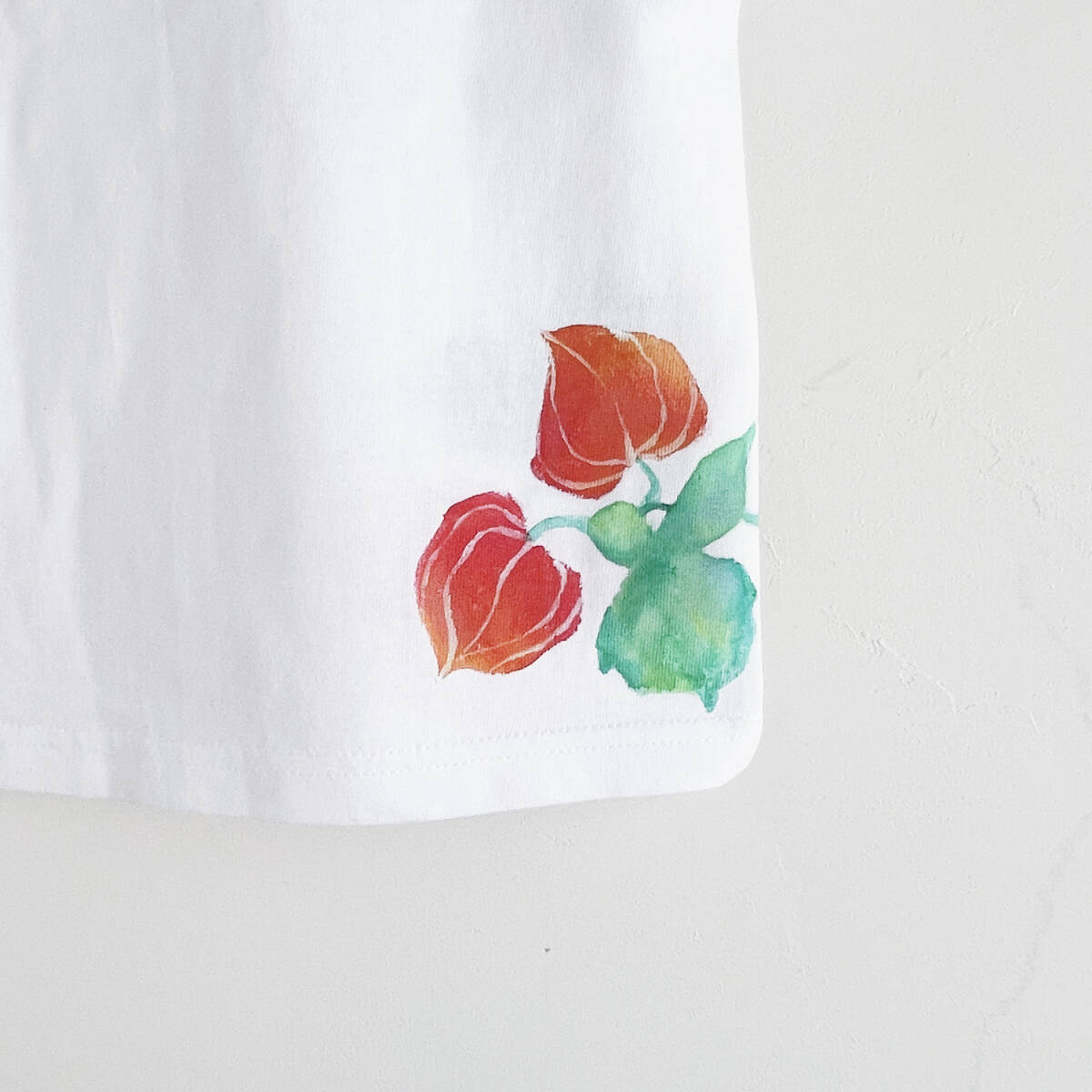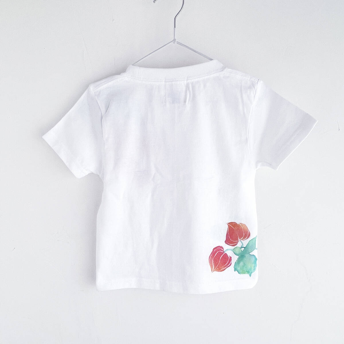 ハンドメイド 手描きTシャツ キッズTシャツ ホオズキ柄Tシャツ 手描きで描いた、鬼灯のTシャツ ホワイト | |||