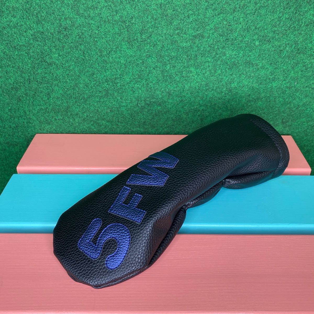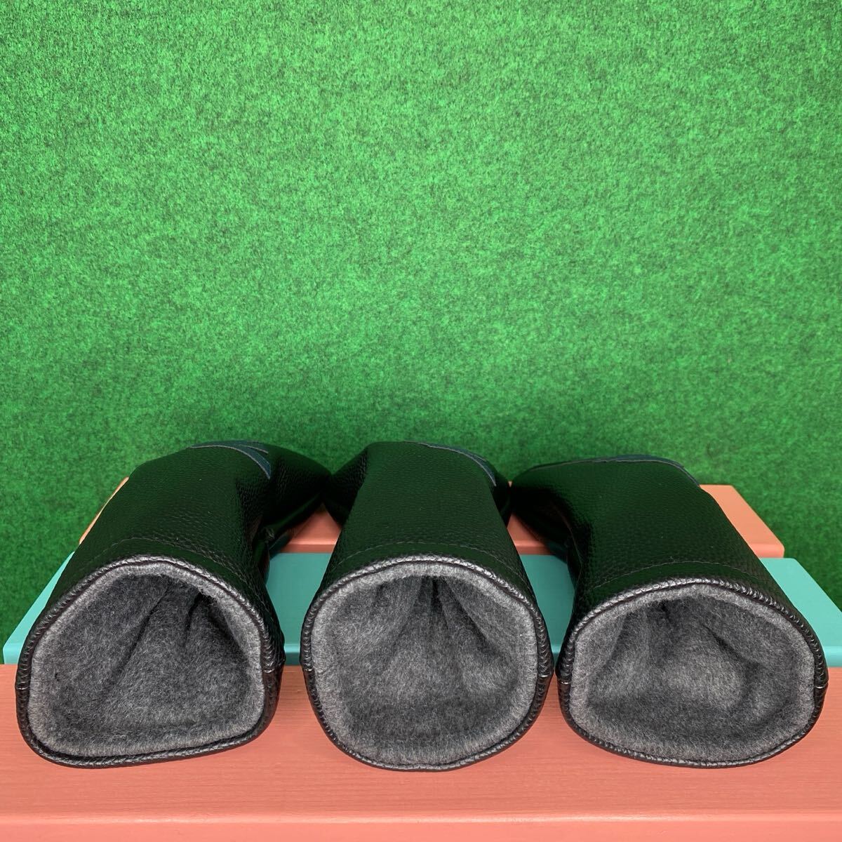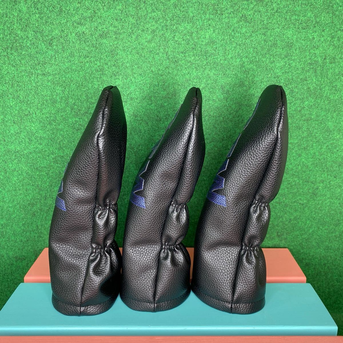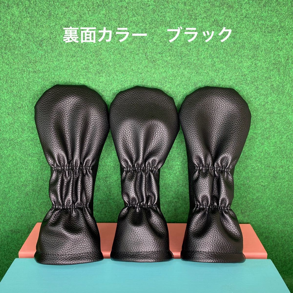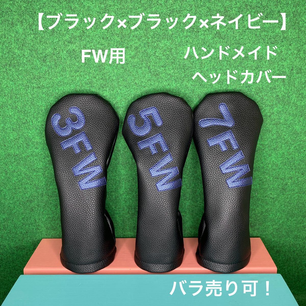 全国送料無料!バラ売り可!【FW用 ゴルフクラブ用ヘッドカバー ブラック×ブラック×ネイビー 】ハンドメイド 黒 合皮 フェイクレザー