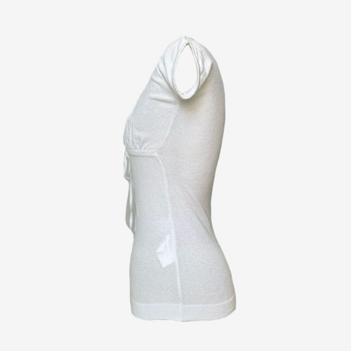 シンプルでフェミニンなデザインが魅力のハーフスリーブトップスです。