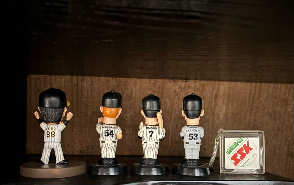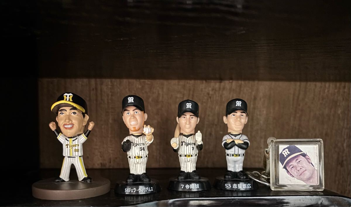 阪神タイガースの首振り人形と田淵幸一の写真のキーホルダーのまとめ売りです。