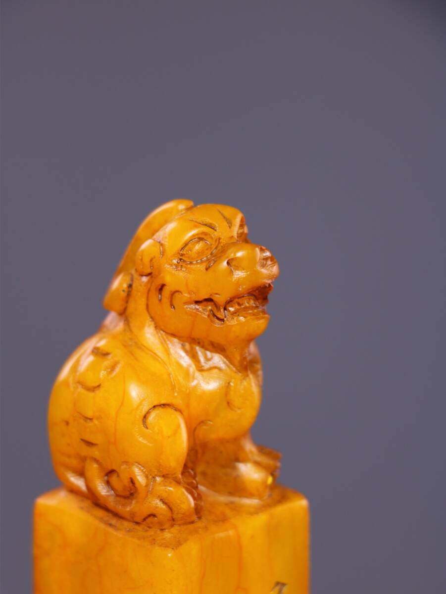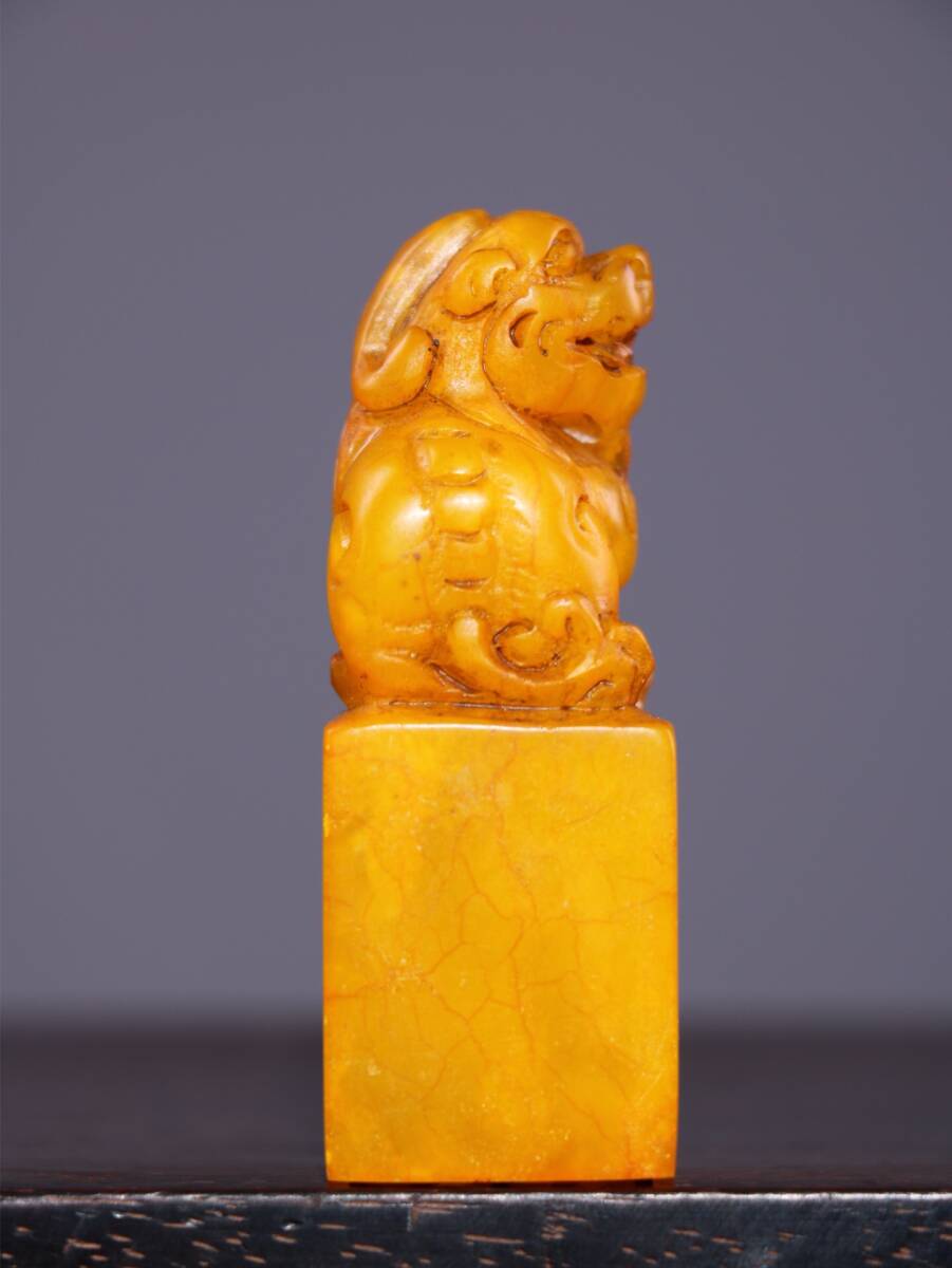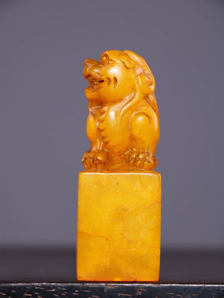【超珍館蔵】寿山石 田黄石 細密彫 神獣印章 文房具 書道品 古賞物 古美術品 稀少珍蔵品