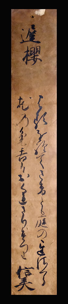 紙本肉筆未装短冊1点 作品寸法:31.8cm x 5.3cm 商品状態:実際の品を画像にてお確かめ下さい。 ★本品は印刷ではなく肉筆の作品です。 ★本品は真作保証の作品です。 出品作品の読みにつきましては、落札後のご依頼についてのみ可能な範囲で対応させて頂きます。 羽倉信美(はくら-のぶよし) 1750-1828。江戸時代中期-後期の歌人。 寛延3年生まれ。京都伏見稲荷(いなり)大社の神職。小沢蘆庵(ろあん)の門下で,上田秋成と親交があった。文政10年11月29日死去。78歳。京都出身。本姓は荷田(かだ)。号は款冬園(かんとうえん)。 出典:講談社『デジタル版 日本人名大辞典+Plus』 |