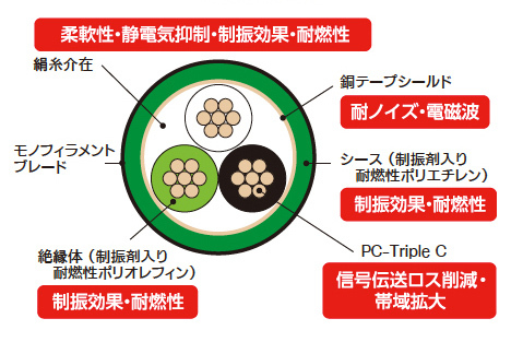 ○o。 低歪率、高伝導率と安定した電気特性の「PC-Triple C」を採用しました